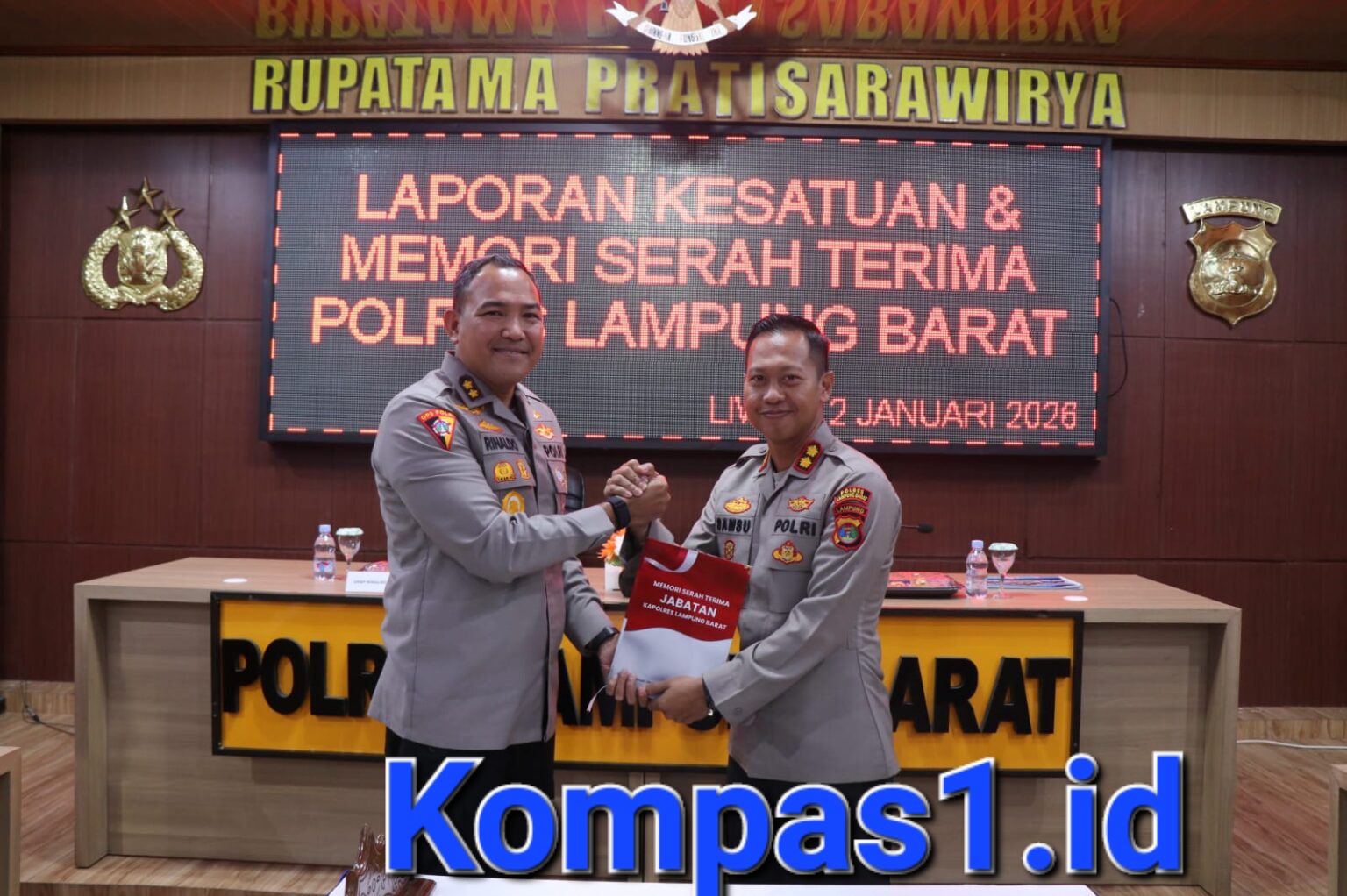 Lampung Barat – Kepemimpinan di lingkungan Polres Lampung Barat resmi mengalami pergantian. Jabatan Kapolres Lampung Barat yang sebelumnya dijabat oleh AKBP Rinaldo Aser, S.H., S.I.K., M.Si., kini diserahterimakan kepada AKBP Samsu Wirman, S.H., S.I.K., M.H. Pergantian jabatan ini merupakan bagian dari kebijakan pimpinan Polri dalam rangka penyegaran organisasi serta pembinaan karier personel.