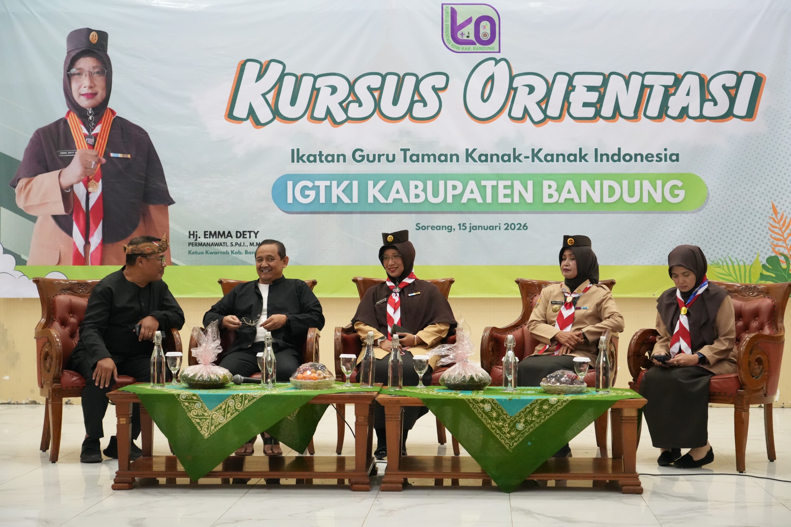Ketua Kwartir Cabang (Kwarcab) Gerakan Pramuka Kabupaten Bandung, Emma Dety Permanawati terus memperkuat komitmennya dalam pembangunan karakter anak usia dini. Hal ini diwujudkan melalui kegiatan Kursus Orientasi Pramuka bagi Kepala Taman Kanak-Kanak (TK) Se-Kabupaten Bandung di Gedung Dewi Sartika, Kamis (15/01/26).
