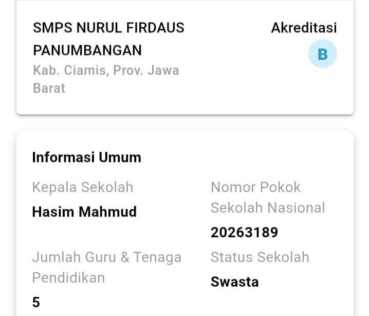 Lipsus Kompas.Id menyoroti keberadaan SMPS Nurul Firdaus Panumbangan setelah melakukan pantauan dan liputan langsung ke lokasi SMPS Nurul Firdaus Panumbangan, Selasa 13/1/2026, di lokasi sudah tidak ada aktivitas/fiktip tidak ada kegiatan belajar mengajar ( KBM ),selain itu masih ada hal yang sangat janggal masih tercatatnya dalam laporan Dapodikdasmen, SMPS Nurul Firdaus Panumbangan Tahun Angaran 2024 – 2025 bahkan masih menerima penyaluran Bantuan Operasional Sekolah ( BOS ).Selain itu juga masih tercatat dalam Dapodikdasmem.