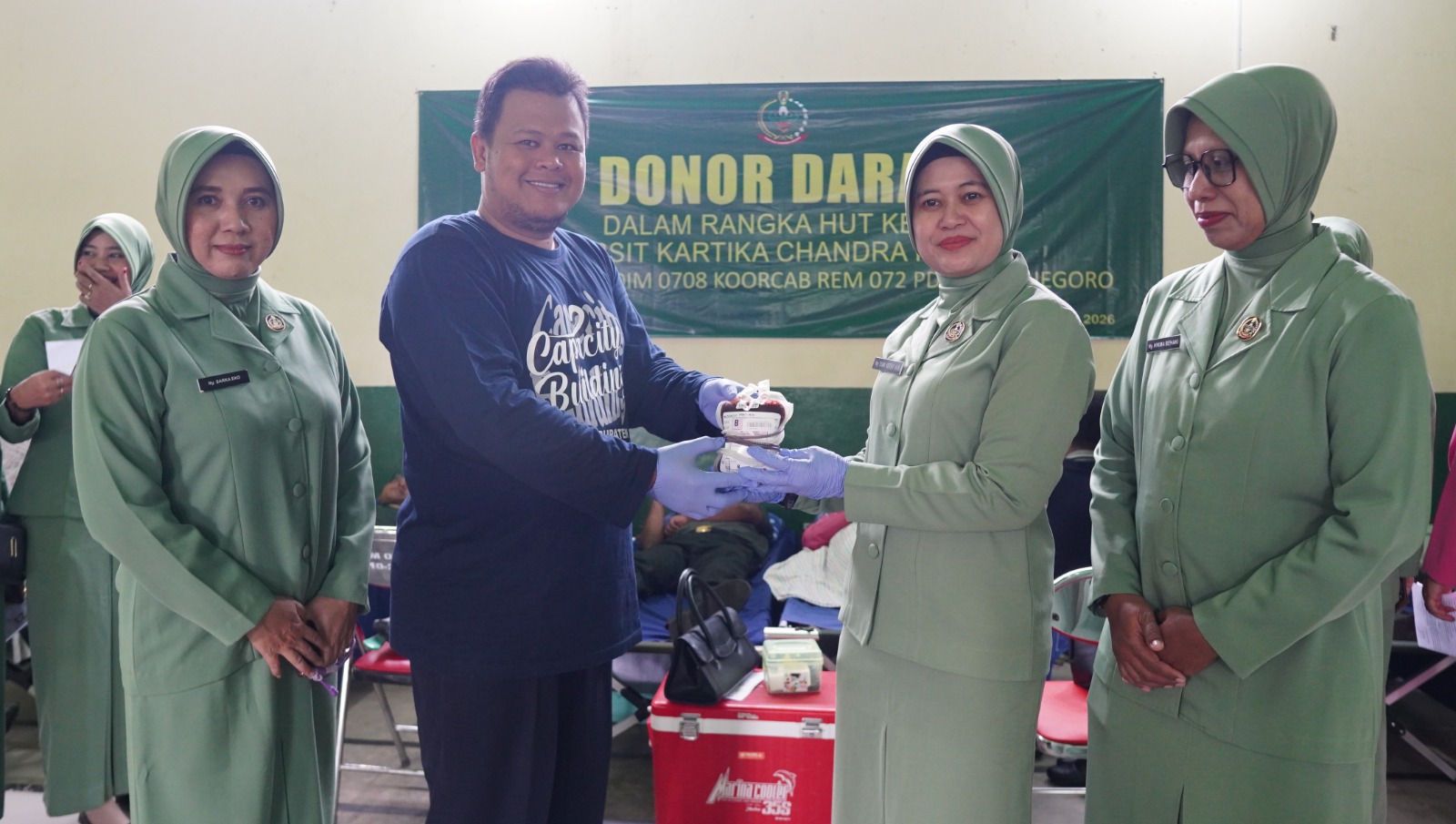 Dalam rangka memperingati Hari Ulang Tahun (HUT) Persit Kartika Chandra Kirana (KCK) ke-80, Kodim 0708 Purworejo menyelenggarakan kegiatan sosial berupa donor darah. Kegiatan tersebut berlangsung di Aula Jenderal Sudirman Makodim 0708 Purworejo, Selasa (27/1/2026).