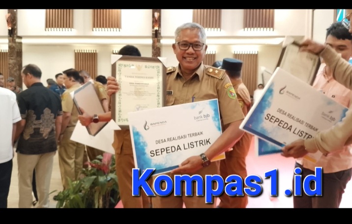 Penghargaan diterima langsung oleh Kepala Desa Pameuntasan H. Suganda , SE. dengan mendapatkan hadiah Sepeda Listrik sebagai desa realisasi terbaik.