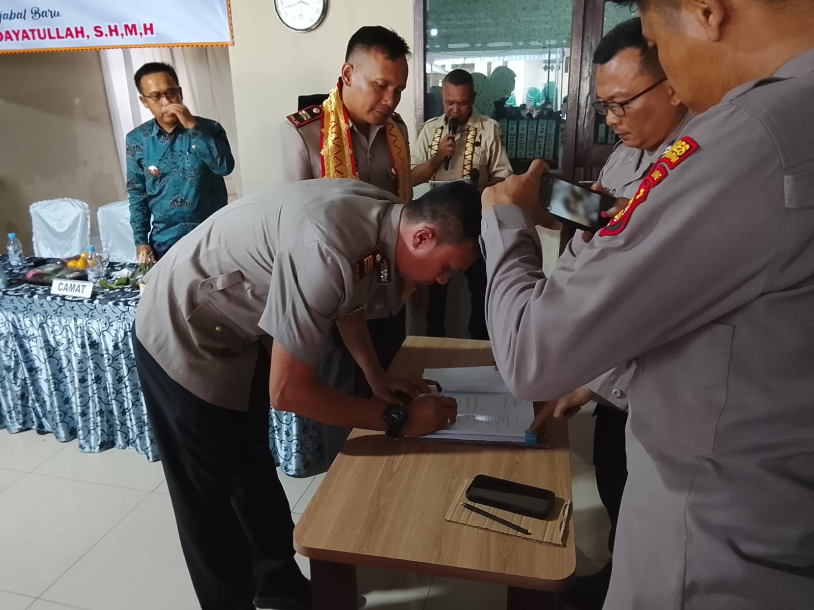Pergantian jabatan tersebut menandai berakhirnya masa tugas AKP Rudi, S.H., M.H. sebagai Kapolsek Katibung dan secara resmi menyerahkan tongkat kepemimpinan kepada IPTU Dita Hidayatullah, S.H., M.H. untuk melanjutkan tugas sebagai Kapolsek Katibung.Acara berlangsung khidmat dan penuh keakraban, dihadiri oleh Camat Katibung Andi Sopyan, S.H., M.H., Camat Way Sulan Fitri Hidayat, Danramil yang diwakili Kapten Infanteri Sobirin, pemangku adat Abas Suhunan Sampurna Jaya, seluruh kepala desa se-Kecamatan Katibung, serta tamu undangan lainnya.