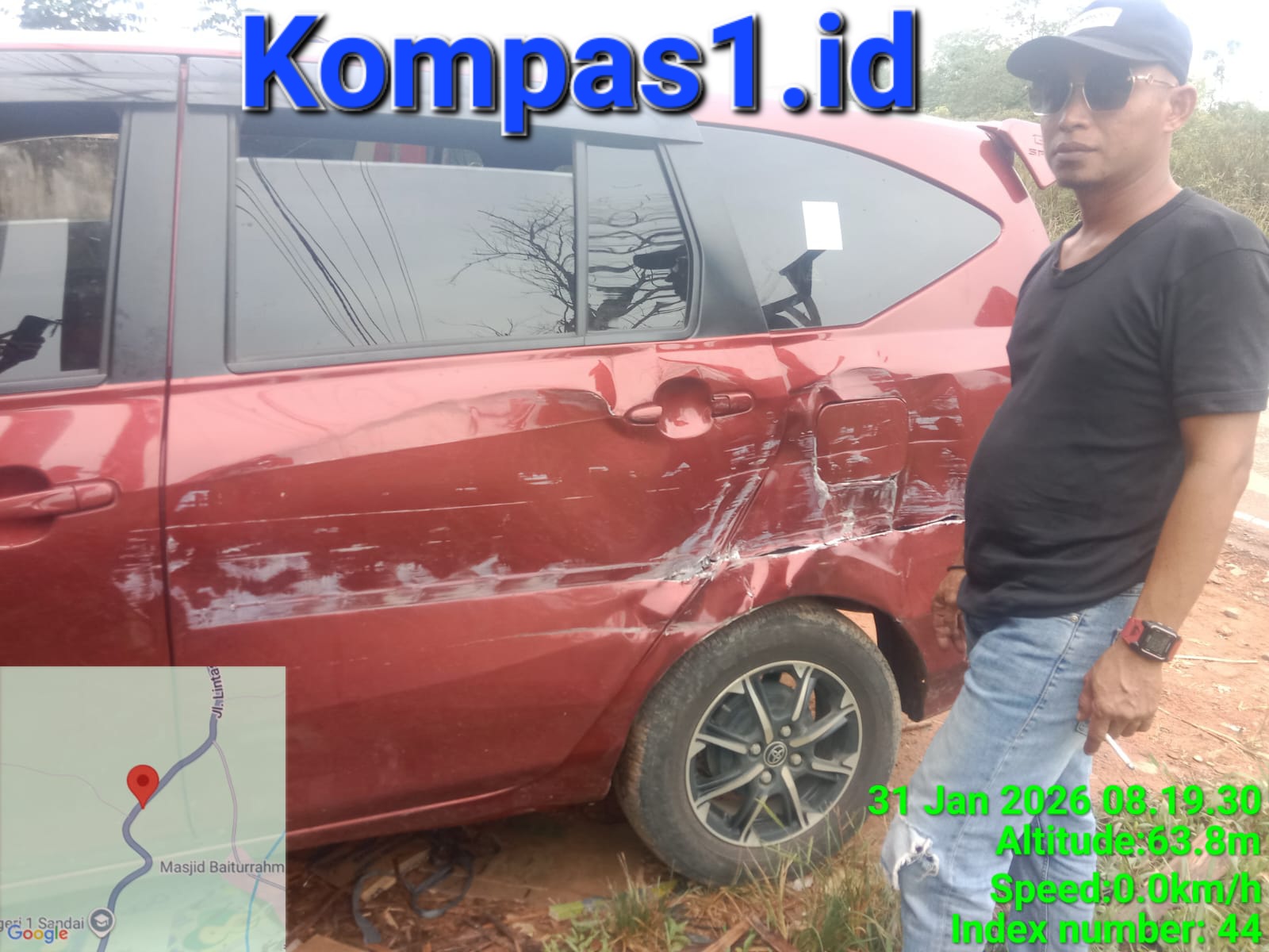 Kecelakaan Lalu Lintas di Jalan Trans Kalimantan Sandai, Toyota Calya Merah Diserempet Mobil Pikap