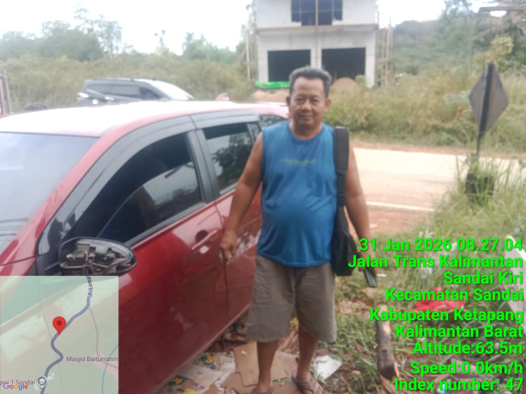 Kecelakaan lalu lintas kembali terjadi di ruas Jalan Trans Kalimantan, tepatnya di wilayah Sandai, Kabupaten Ketapang, Kalimantan Barat, pada Sabtu, 31 Januari 2026. Insiden tersebut melibatkan sebuah mobil Toyota Calya berwarna merah dan sebuah mobil pikap, yang diduga saling berserempetan saat melintas dari arah berlawanan.