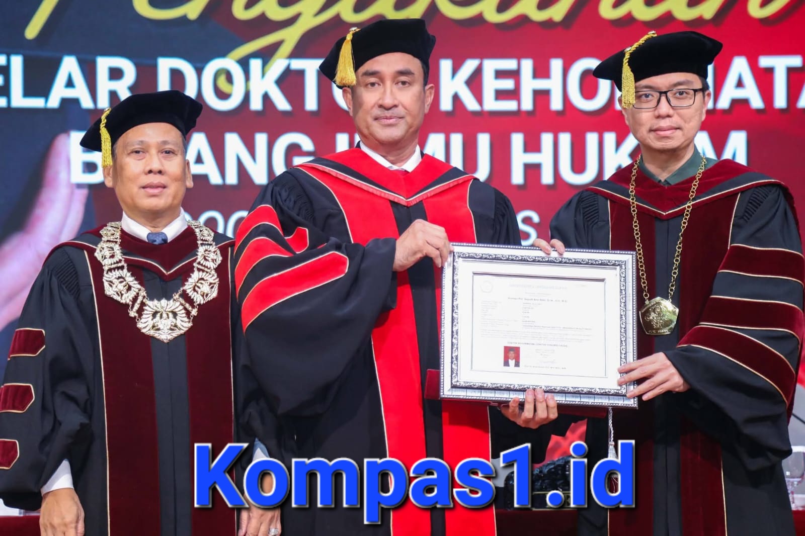 Penganugerahan gelar tersebut merupakan bentuk penghargaan akademik tertinggi atas kontribusi, pemikiran, dan pengabdian yang konsisten dalam pengembangan dan penegakan hukum, khususnya melalui penguatan kebijakan nasional serta praktik hukum yang berkeadilan dalam upaya Pencegahan dan Pemberantasan Penyalahgunaan dan Peredaran Gelap Narkotika (P4GN).