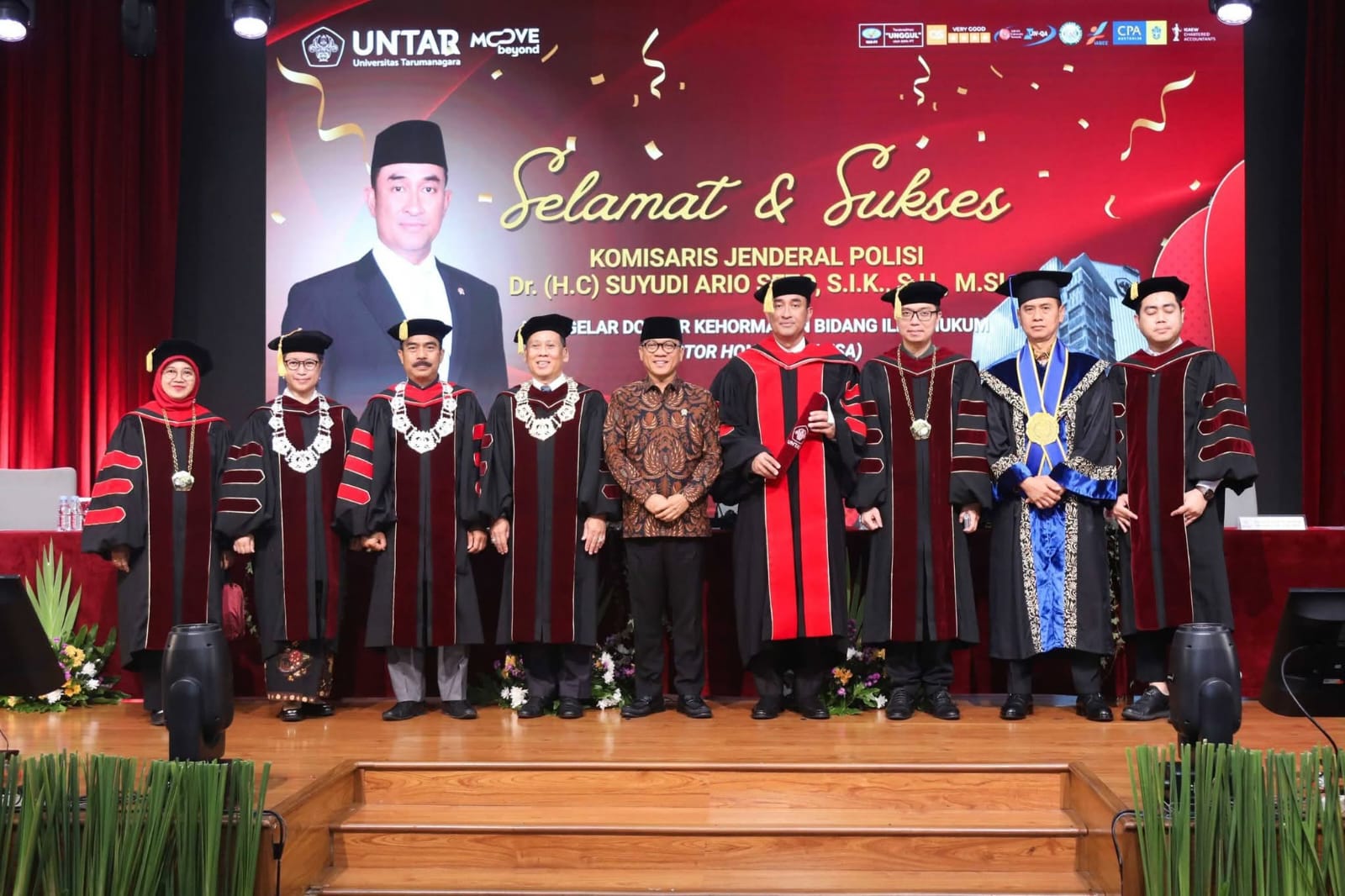 Sidang terbuka Senat Universitas Tarumanagara yang digelar pada Sabtu (31/1), di Auditorium Universitas Tarumanagara, Jakarta Barat, secara resmi mengukuhkan Kepala BNN RI, Komjen Pol Suyudi Ario Seto, S.I.K., S.H., M.Si., dalam gelar Doktor Kehormatan (Doctor Honoris Causa) Bidang Ilmu Hukum.