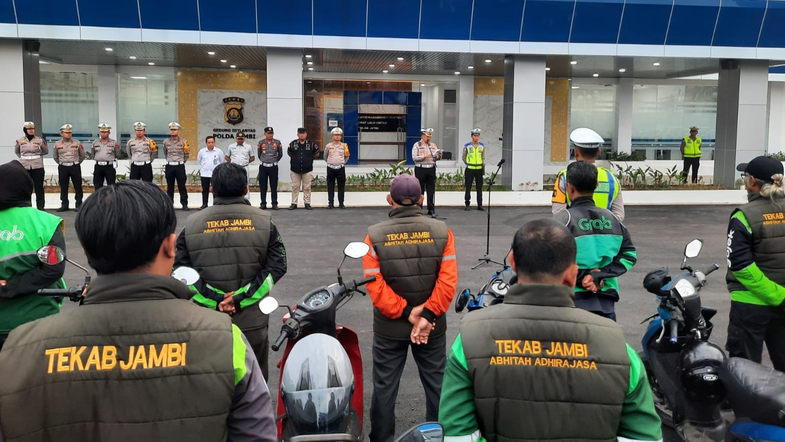 Jambi – Direktorat Lalu Lintas (Ditlantas) Polda Jambi menggelar Apel Bersama Komunitas Ojek Online se-Provinsi Jambi dalam rangka mendukung terciptanya Keamanan, Keselamatan, Ketertiban, dan Kelancaran Lalu Lintas (Kamseltibcarlantas), Selasa (3/2/2026) pagi.