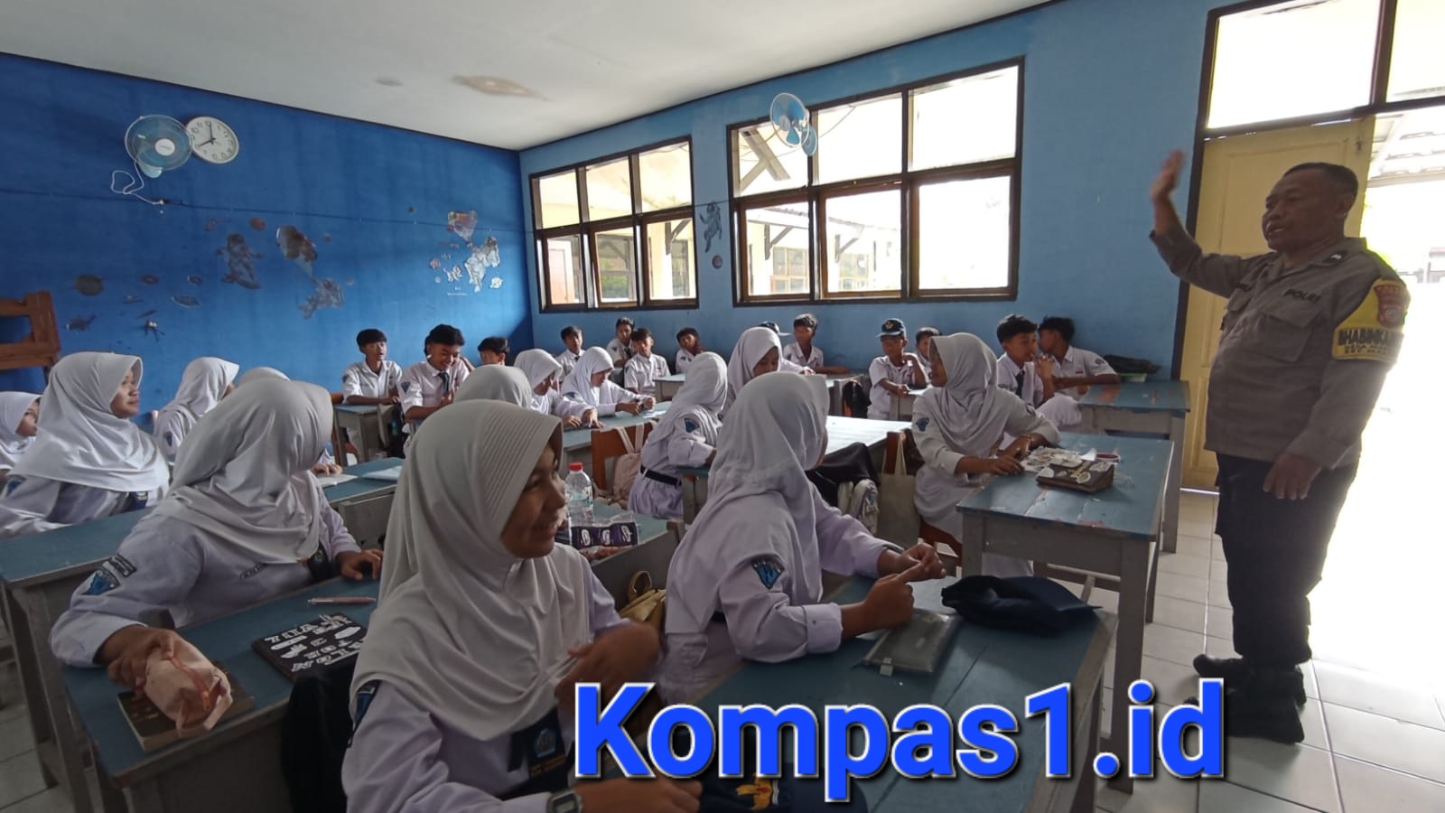 Kegiatan Bhabinkamtibmas Desa Margaasih Aipda Ibnu laksanakan Police Go To School di SMPN 1 Margaasih Desa Margaasih Kecamatan Margaasih.