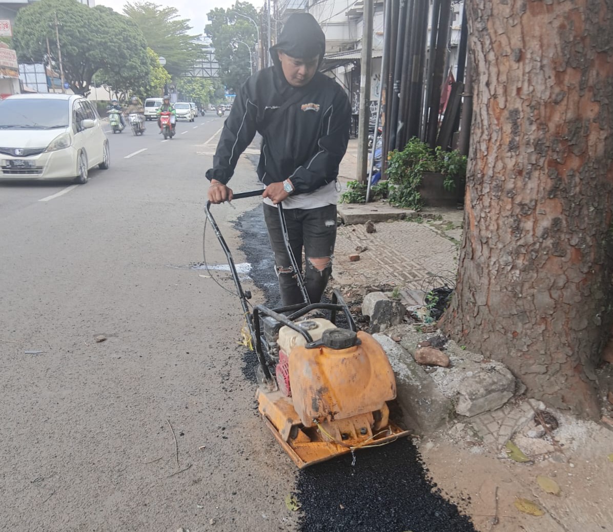 Pak Indra menjelaskan bahwa perapihan ini bertujuan untuk meningkatkan keselamatan dan kenyamanan pengendara, baik roda dua maupun roda empat. “Kami memastikan setiap menhol rata dengan badan jalan agar tidak membahayakan pengendara. Selain itu, lubang-lubang jalan juga kami tutup dan lapisi kembali dengan aspal baru agar lebih kuat dan tahan lama,” ujarnya di sela kegiatan.