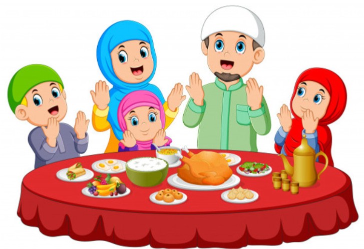 Menjelang waktu berbuka, keluarga biasanya telah bersiap dengan berbagai hidangan istimewa. Meja makan ditata rapi dengan sajian khas berbuka, mulai dari kurma sebagai pilihan utama untuk membatalkan puasa, hingga aneka makanan berat dan pencuci mulut. Aroma harum masakan yang menggoda perlahan memenuhi ruangan, membangkitkan selera setelah seharian menahan lapar dan dahaga. Namun di balik rasa lapar itu, hati tetap tenang dan dipenuhi rasa syukur.