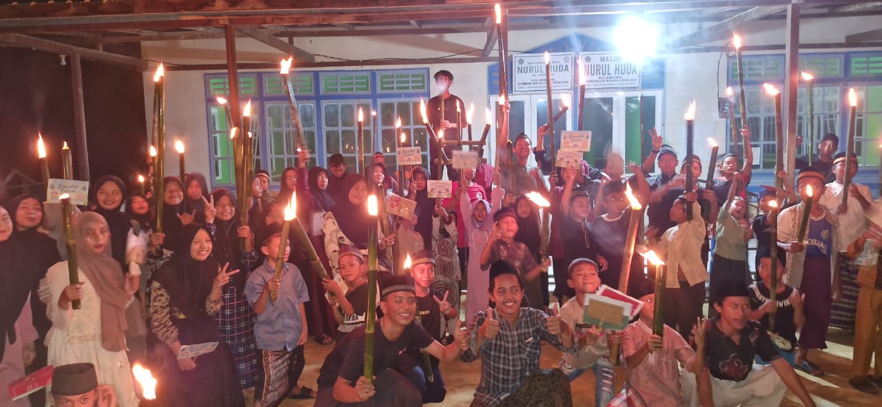 Pawai obor tersebut dimulai dari Masjid Nurul Huda yang menjadi titik kumpul utama warga. Sejak selepas salat Isya, masyarakat dari berbagai kalangan telah memadati area masjid. Anak-anak, remaja, hingga orang tua tampak antusias mempersiapkan diri sambil membawa obor yang akan dinyalakan bersama-sama.