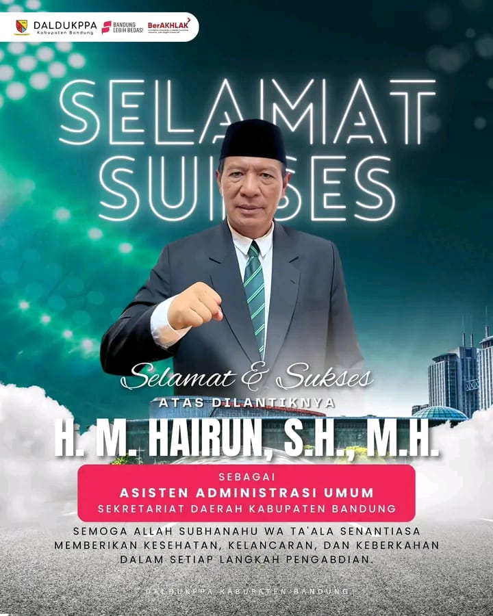 Selamat & Sukses atas dilantiknya H.M Hairun,S.H.,M.H. Sebagai Asisten Administrasi Umum ASDA lll Sekertariat Daerah Kabupaten Bandung