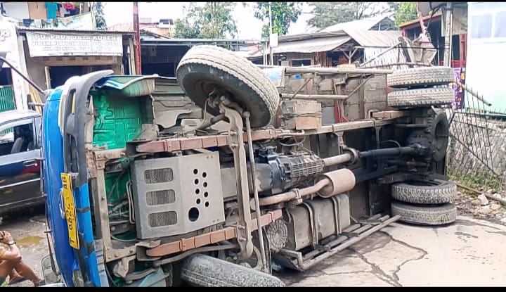 Kanit Lantas Polsek Margaasih Polres Cimahi. Tangani kecelakaan truk minyak goreng Minyakita di Kp. Cibeureum, Desa Nanjung Kecamatan Margaasih, Kabupaten Bandung. Truk itu terguling dan menibdas pemotor Vario beruntungnya, pengendara motor loncat dan tidak ada korban jiwa dalam kecelakaan ini. Namun, ratusan dus minyak goreng harus dievakuasi dari dalam truk.