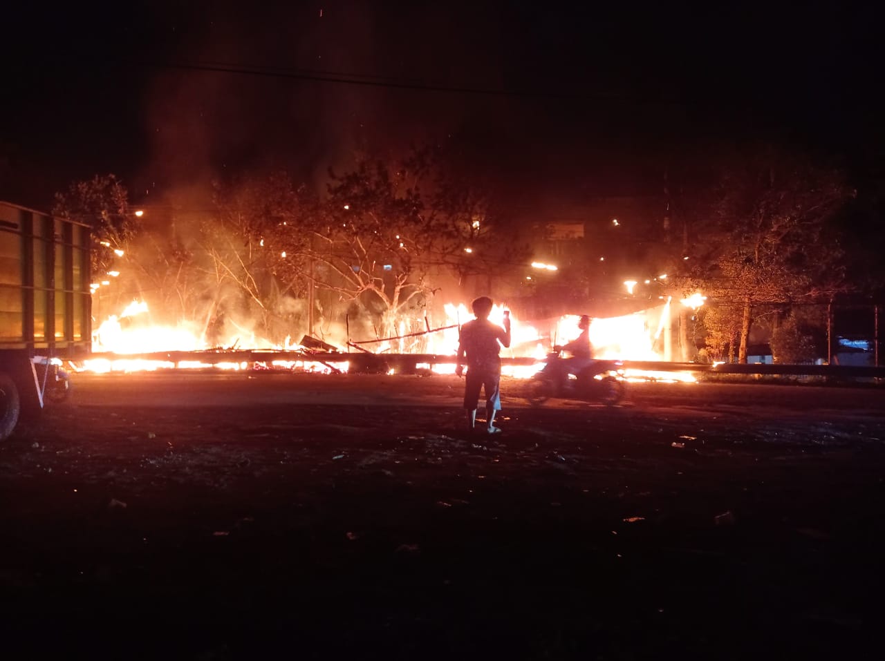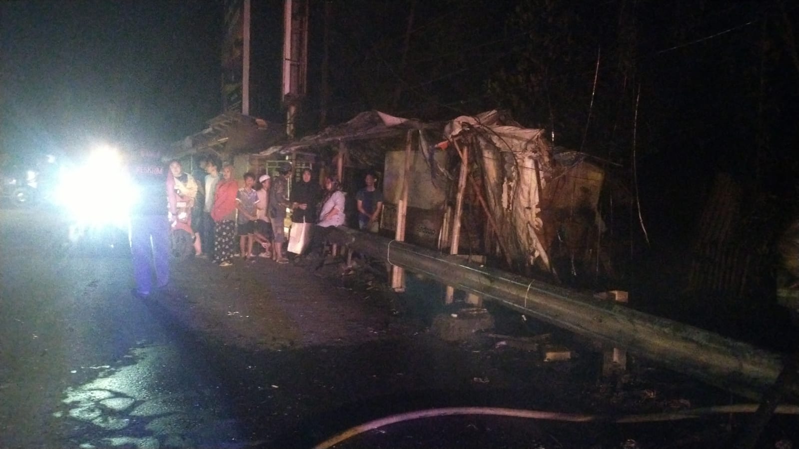 Hanya Materil : 3.(tiga ) bangunan Kios semi permanen yang berdiri di atas tanah bangunan milik Jasa Marga (tanpa ijin ) yang terbakar hangus oleh amukan si jago merah.