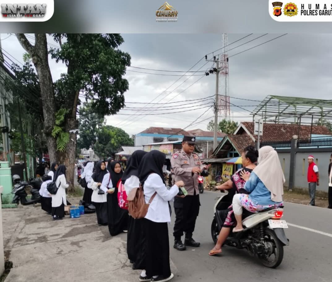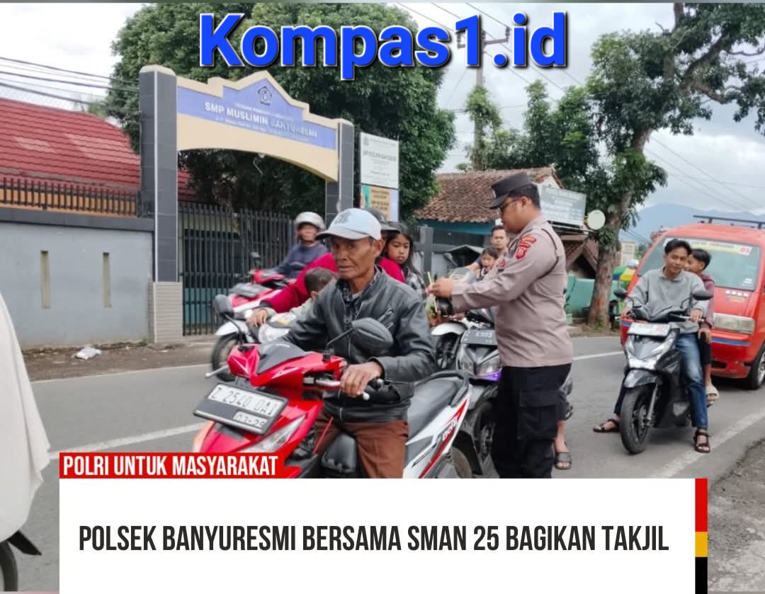 Dalam rangka meningkatkan kepedulian sosial di bulan suci Ramadan, jajaran Polsek Banyuresmi Polres Garut bersama siswa-siswi SMAN 26 Garut melaksanakan kegiatan pembagian takjil kepada para pengendara yang melintas di Jalan Raya Banyuresmi, Kabupaten Garut.