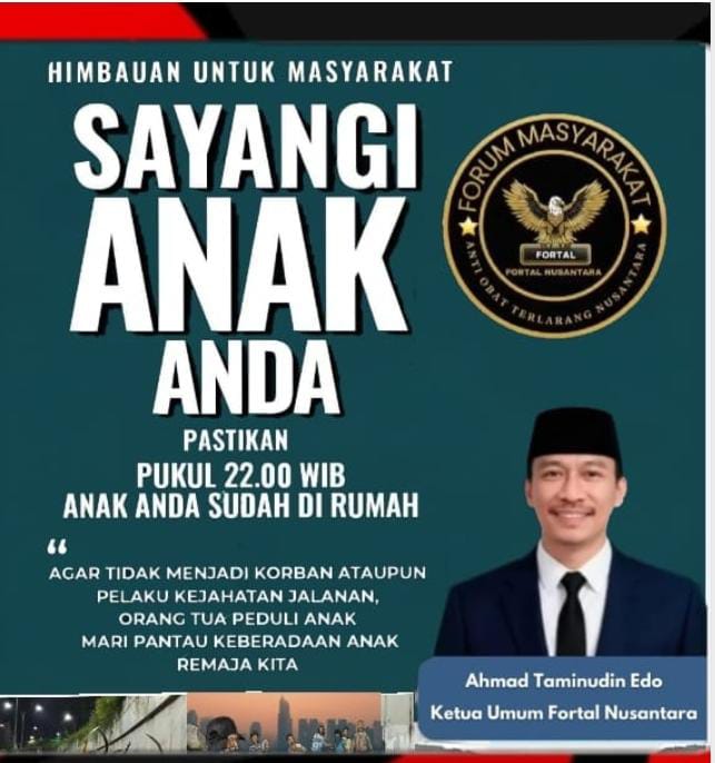 Ketua Umum Fortal Nusantara, Ahmad Taminudin Edo, Berikan Himbowan kepada Para orang Tua Anak anak nya pukul 22, Sudah di Rumah