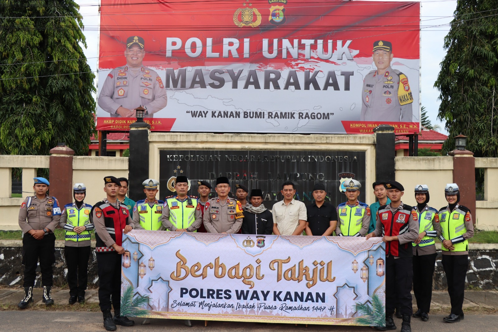 Kapolres Way Kanan AKBP Didik Kurnianto, S.I.K melalui Wakapolres Way Kanan Kompol Iwan Setiawan, S.H, M.H  saat dikonfimasi, menyampaikan dirinya memanfaatkan momen Bulan Suci Ramadan 1447 Hijiriah ini dengan membagikan takjil untuk berbuka puasa kepada warga yang melintas di depan mako dan sekitar, khususnya umat muslim yang sedang menjalankan ibadah puasa sebagai salah satu bentuk kepedulian Polri untuk masyarakat.