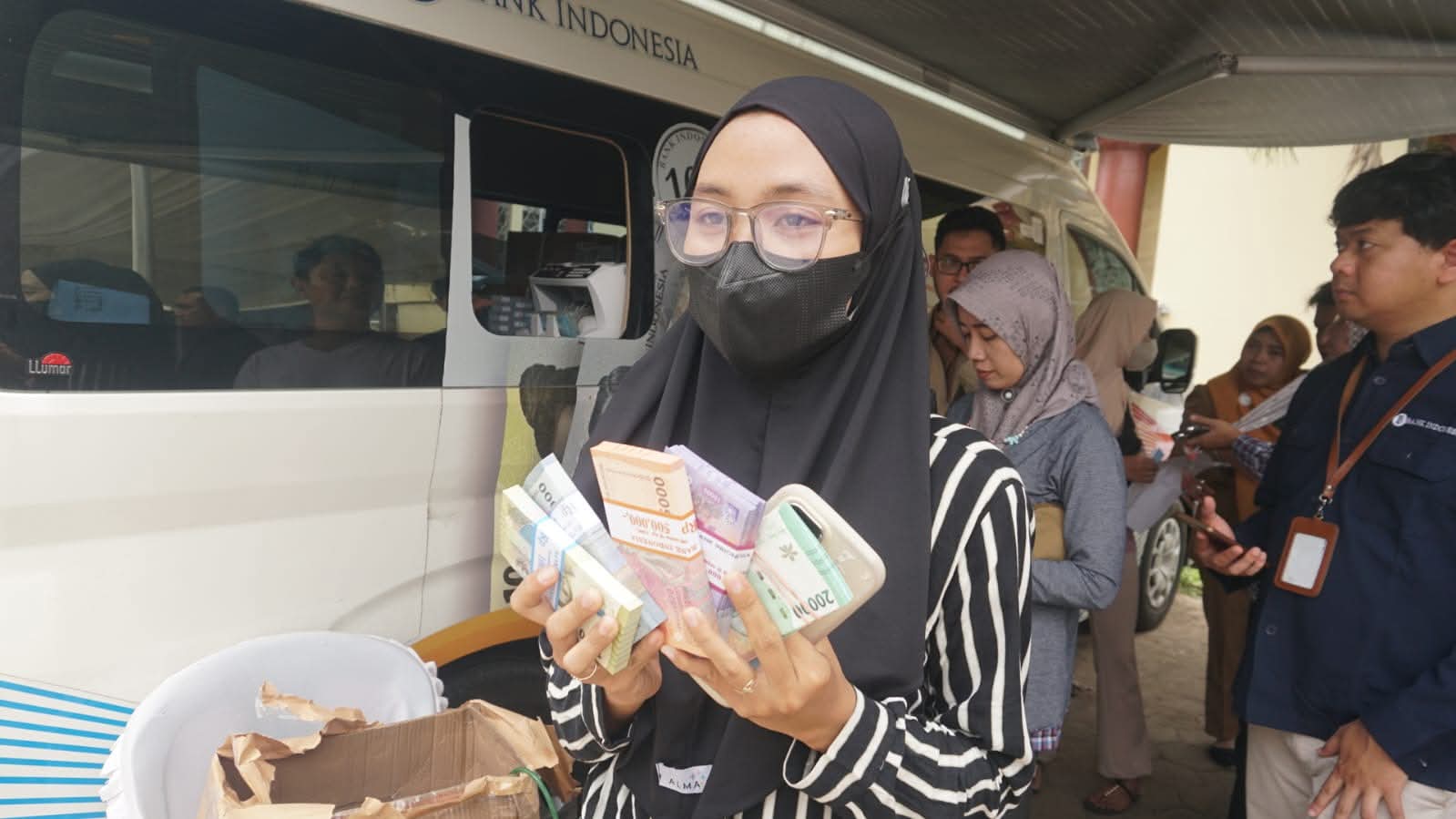 “Ya, ini menukar uang baru di BI. Ini sangat membantu,” ujarnya saat ditemui di sela-sela kegiatan.