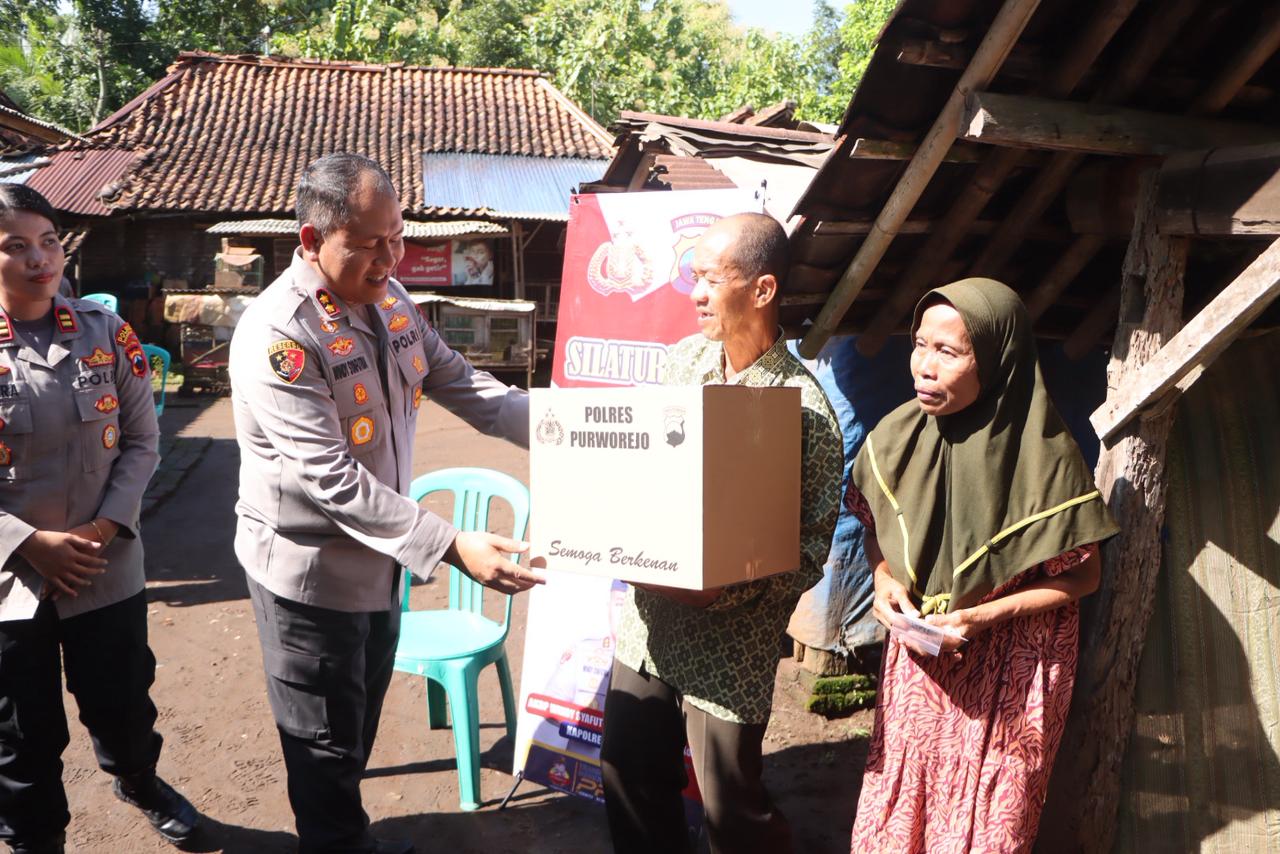 Dalam kegiatan tersebut, Kapolres Purworejo memberikan bantuan sembako kepada Mbah Sari (70), seorang lansia yang hidup seorang diri tanpa suami dan anak.