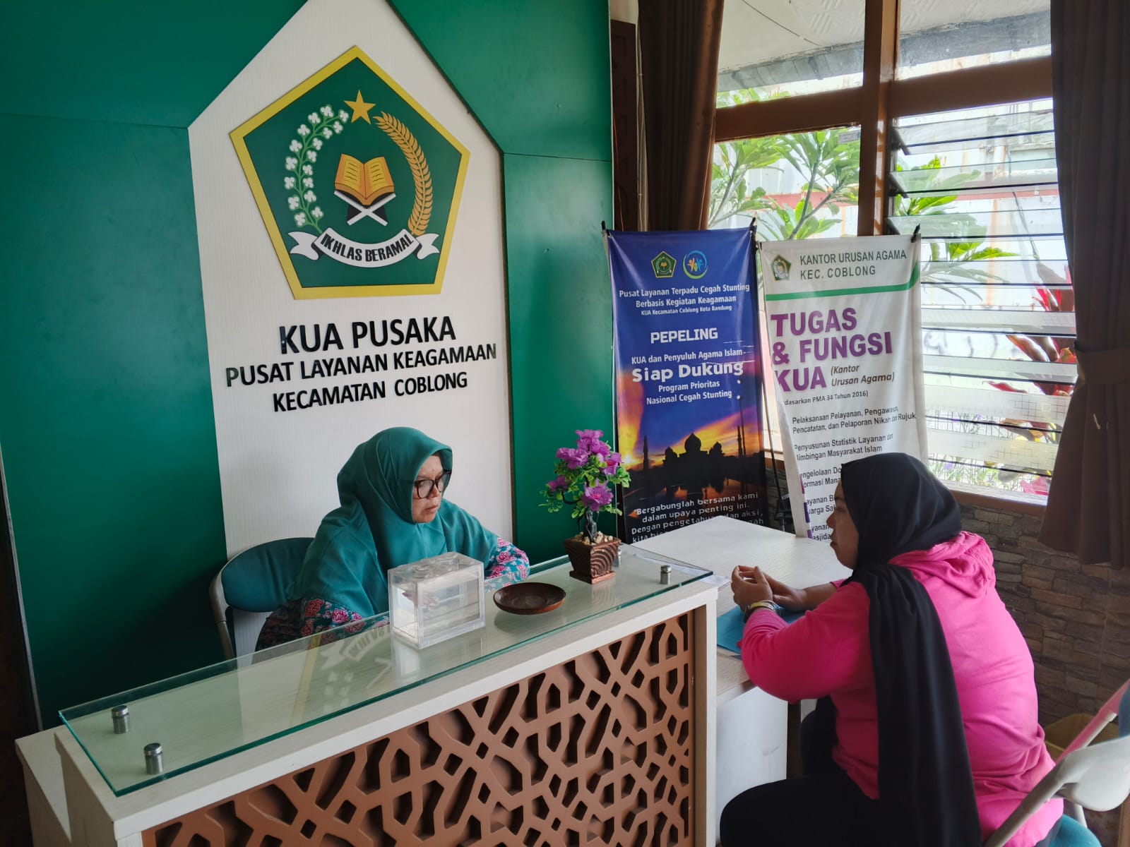 Sejak memasuki area pelayanan, masyarakat langsung merasakan suasana yang nyaman dan tertib. Petugas melayani dengan sigap, memberikan penjelasan yang jelas, serta membantu setiap proses administrasi pernikahan maupun layanan keagamaan lainnya dengan penuh tanggung jawab.