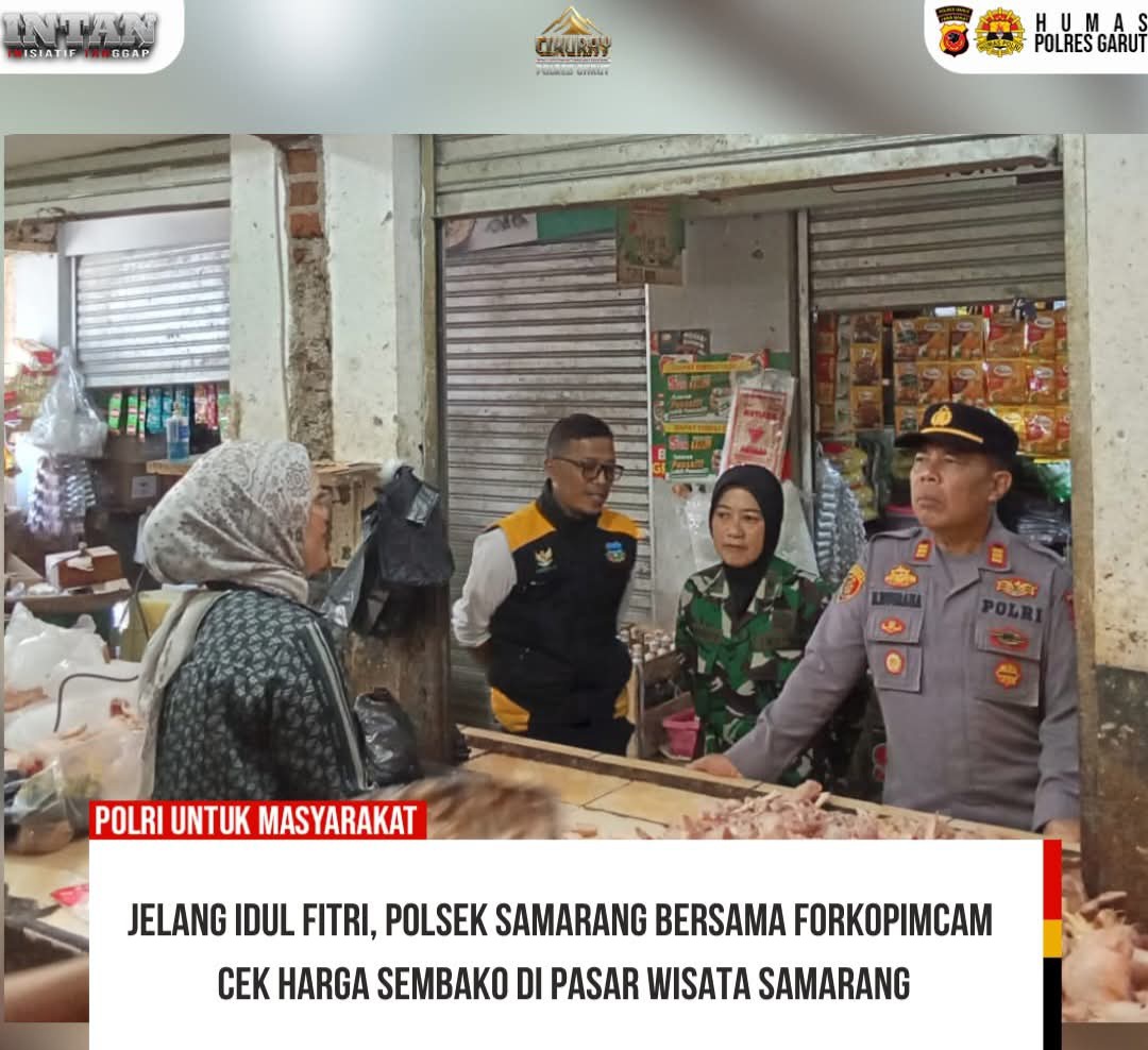 Menjelang Hari Raya Idul Fitri, Forkopimcam Samarang melakukan pengecekan harga dan ketersediaan bahan pokok penting (Bapokting) di Pasar Wisata Samarang, Desa Samarang, Kecamatan Samarang, Kabupaten Garut, Rabu (11/3/2026).