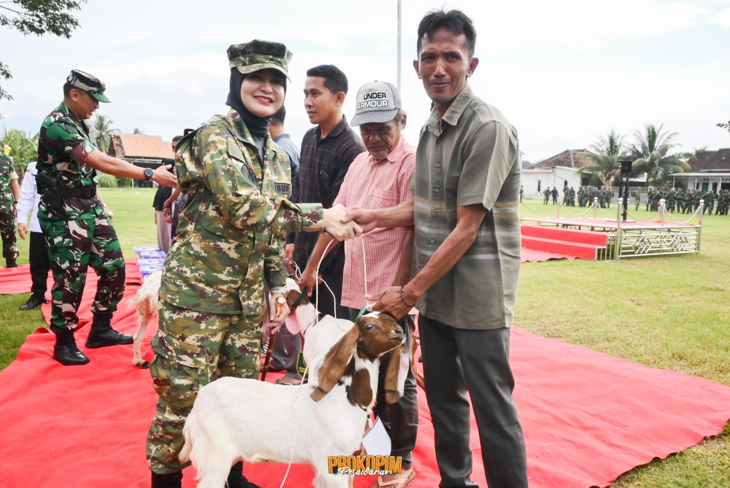 Pada kesempatan tersebut, juga turut diserahkan sejumlah bantuan kepada masyarakat, antara lain bingkisan sembako serta bantuan bibit kambing sebagai upaya mendukung peningkatan kesejahteraan warga.