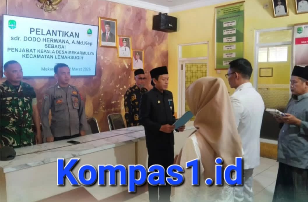 Majalengka,- KOMPAS1.id || Jajaran Polsek Lemahsugih Polres Majalengka menghadiri sekaligus melaksanakan pengamanan dalam acara Pelantikan dan Pengambilan Sumpah Jabatan Penjabat (Pj) Kepala Desa Mekarmulya, Kecamatan Lemahsugih, Kabupaten Majalengka. Kegiatan yang berlangsung khidmat tersebut dilaksanakan di aula Desa Mekarmulya pada Kamis pagi (12/3/2026).