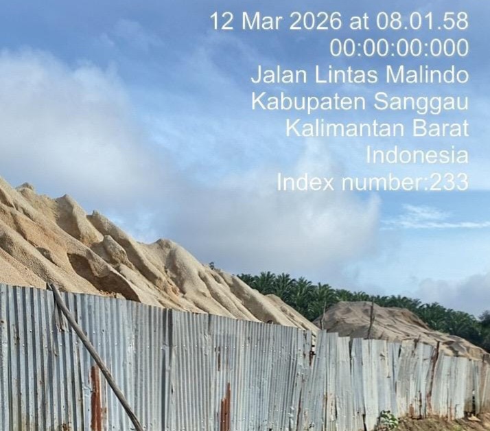 Tumpukan pasir yang berada di pinggir Jalan Lintas Malindo, wilayah Kabupaten Sanggau, Kalimantan Barat, menimbulkan kekhawatiran bagi para pengguna jalan. Material pasir yang ditumpuk dalam jumlah besar terlihat sudah melebihi batas pembatas atau dinding seng yang ada di lokasi, sehingga berpotensi roboh dan membahayakan masyarakat yang melintas.