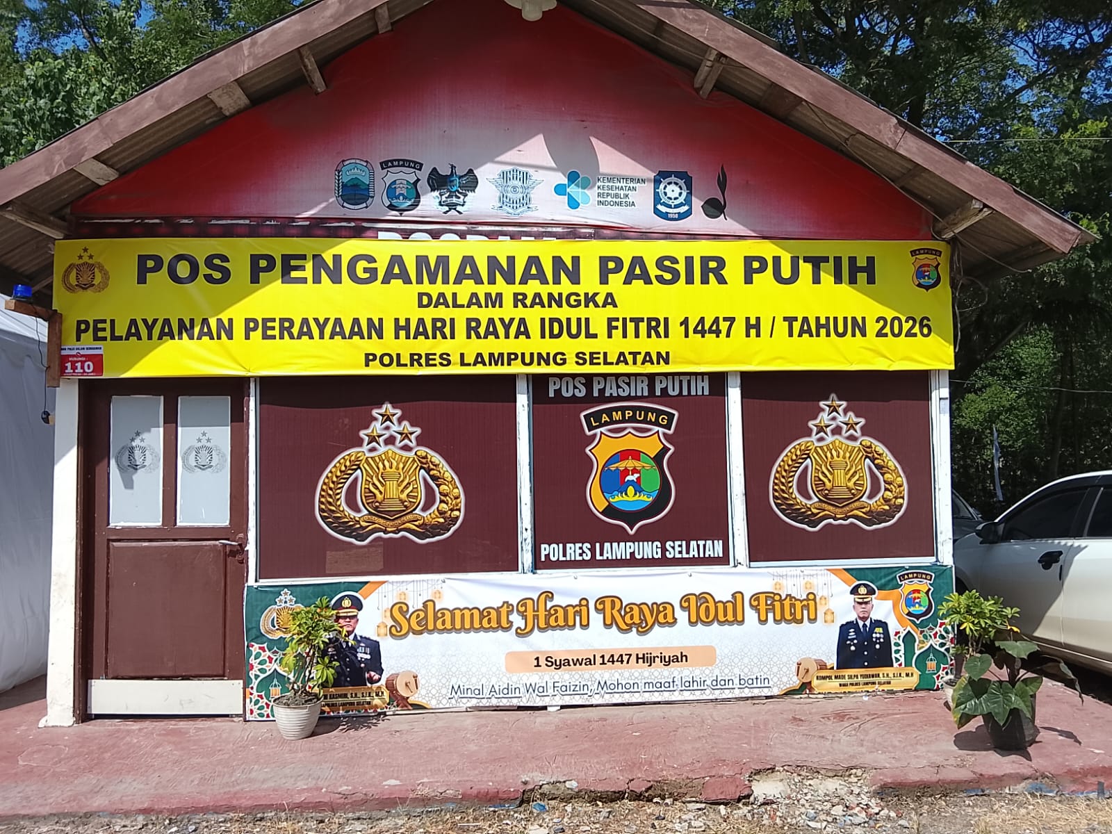 Lampung Selatan – KOMPAS1.id ||  Dalam rangka pengamanan arus mudik dan perayaan Idul Fitri 1447 Hijriah tahun 2026, jajaran Polres Lampung Selatan mendirikan Pos Pengamanan di kawasan Pasir Putih, Kecamatan Katibung, Lampung Selatan.