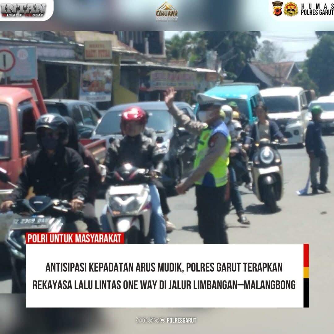 Garut –KOMPAS1.id ||  Dalam rangka menjaga kelancaran arus lalu lintas selama pelaksanaan Operasi Ketupat Lodaya 2026, Satuan Lalu Lintas Polres Garut menerapkan rekayasa lalu lintas berupa sistem one way di sejumlah titik rawan kepadatan kendaraan di wilayah Kabupaten Garut.