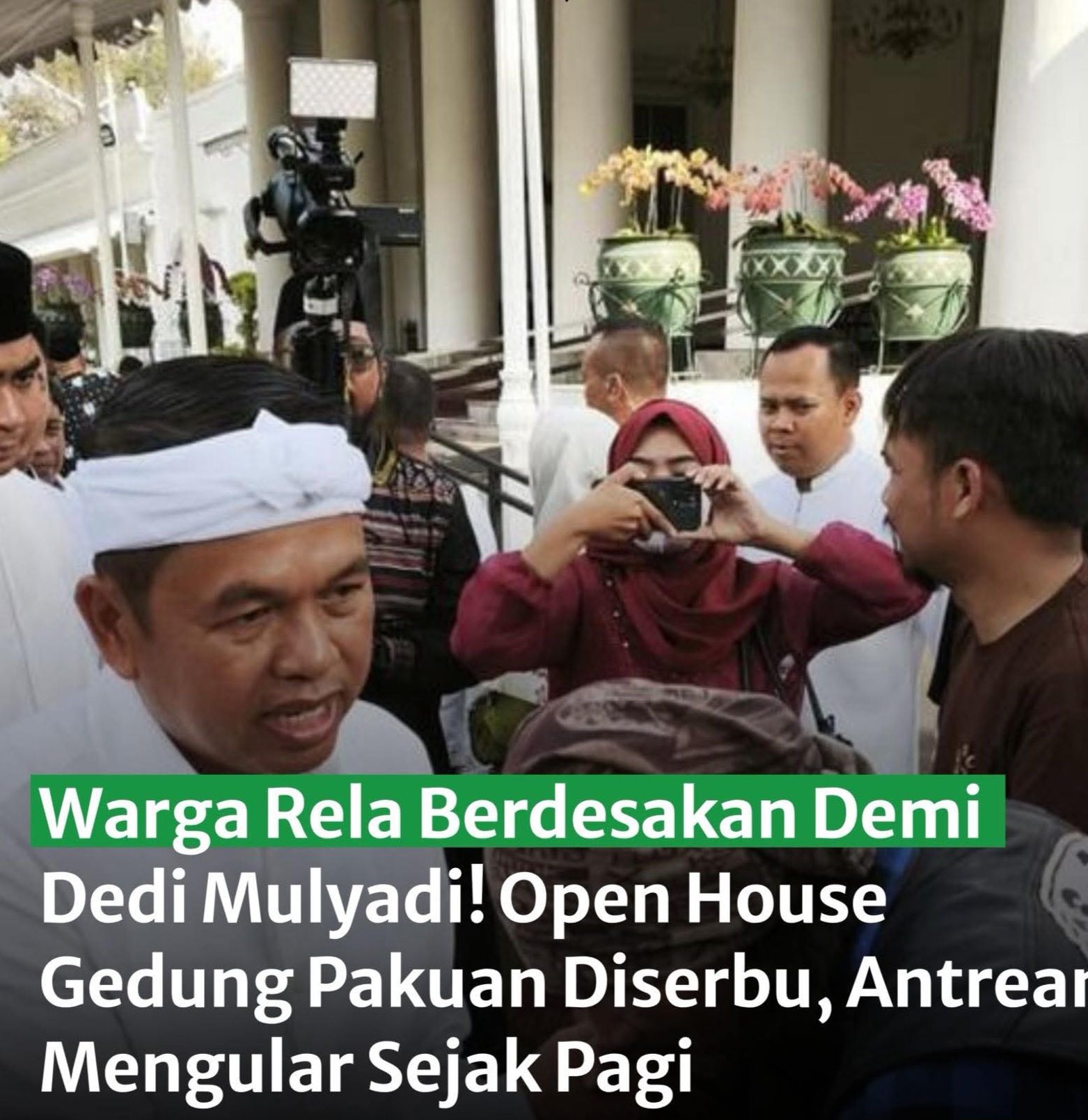 Suasana Gedung Pakuan, Bandung, mendadak penuh sesak usai salat Idulfitri 2026. Ribuan warga dari berbagai penjuru Bandung Raya tumpah ruah menghadiri gelar griya yang digelar Gubernur Jawa Barat, Dedi Mulyadi.