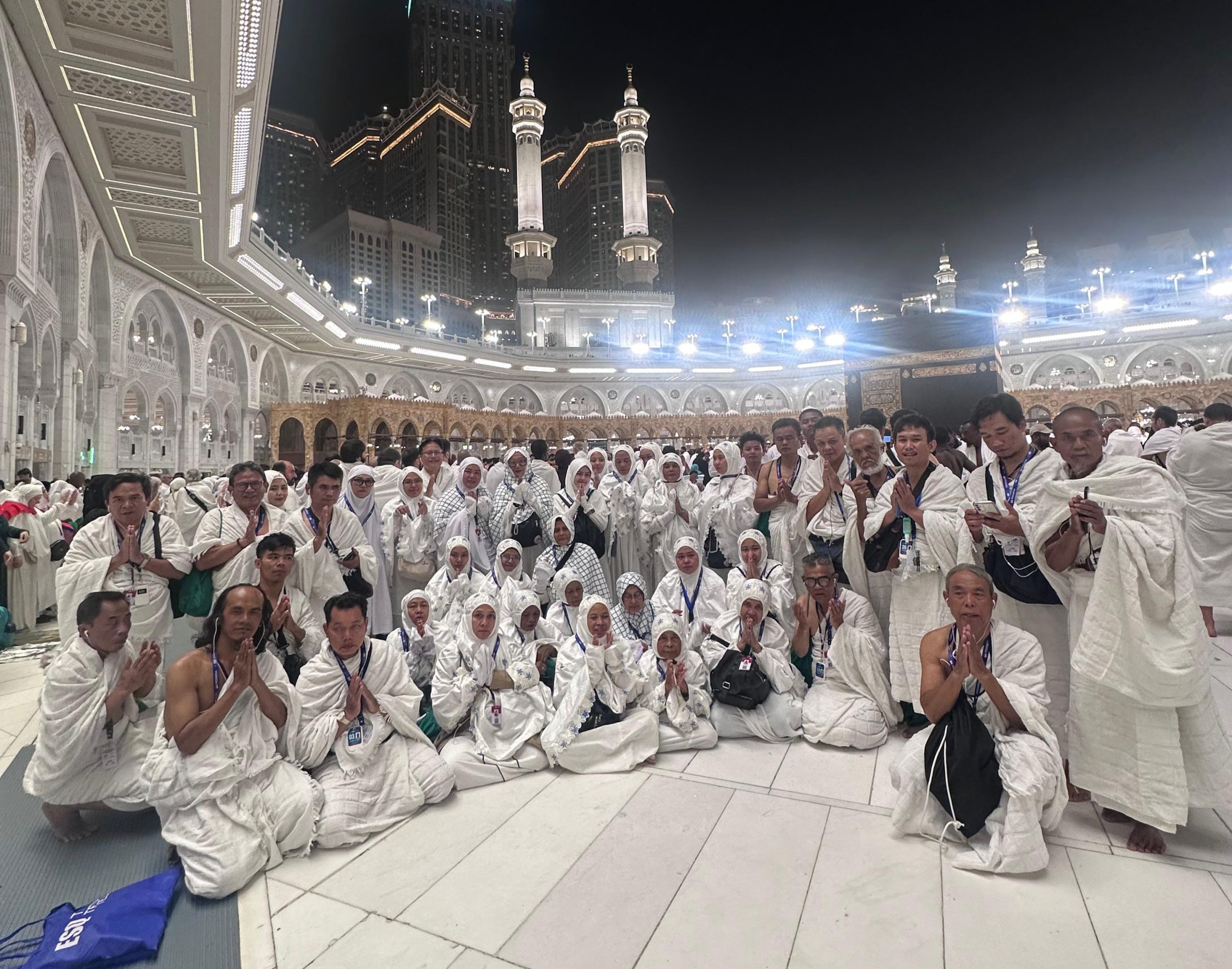 Bapak-bapak membawa *Kain Ihrom* nya (menggunakan ihrom setelah berada di tempat Miqot)