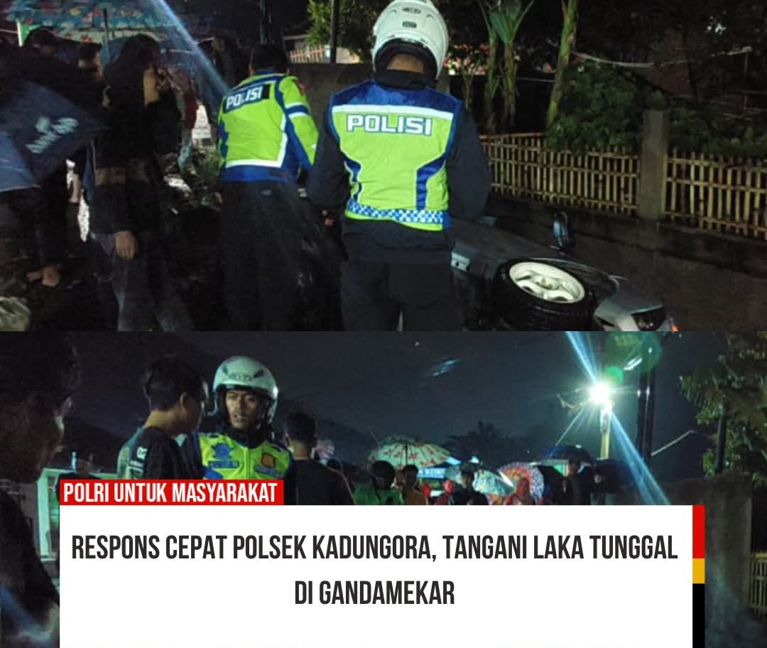 Sebuah kecelakaan lalu lintas tunggal terjadi di wilayah Kecamatan Kadungora, Kabupaten Garut, Sabtu (28/3/2026) malam sekitar pukul 19.30 WIB. Insiden tersebut melibatkan satu unit kendaraan roda empat jenis Toyota Sigra yang terperosok ke dalam parit di Jalan Raya Desa Gandamekar, tepatnya di Kampung Cihuni Girang.