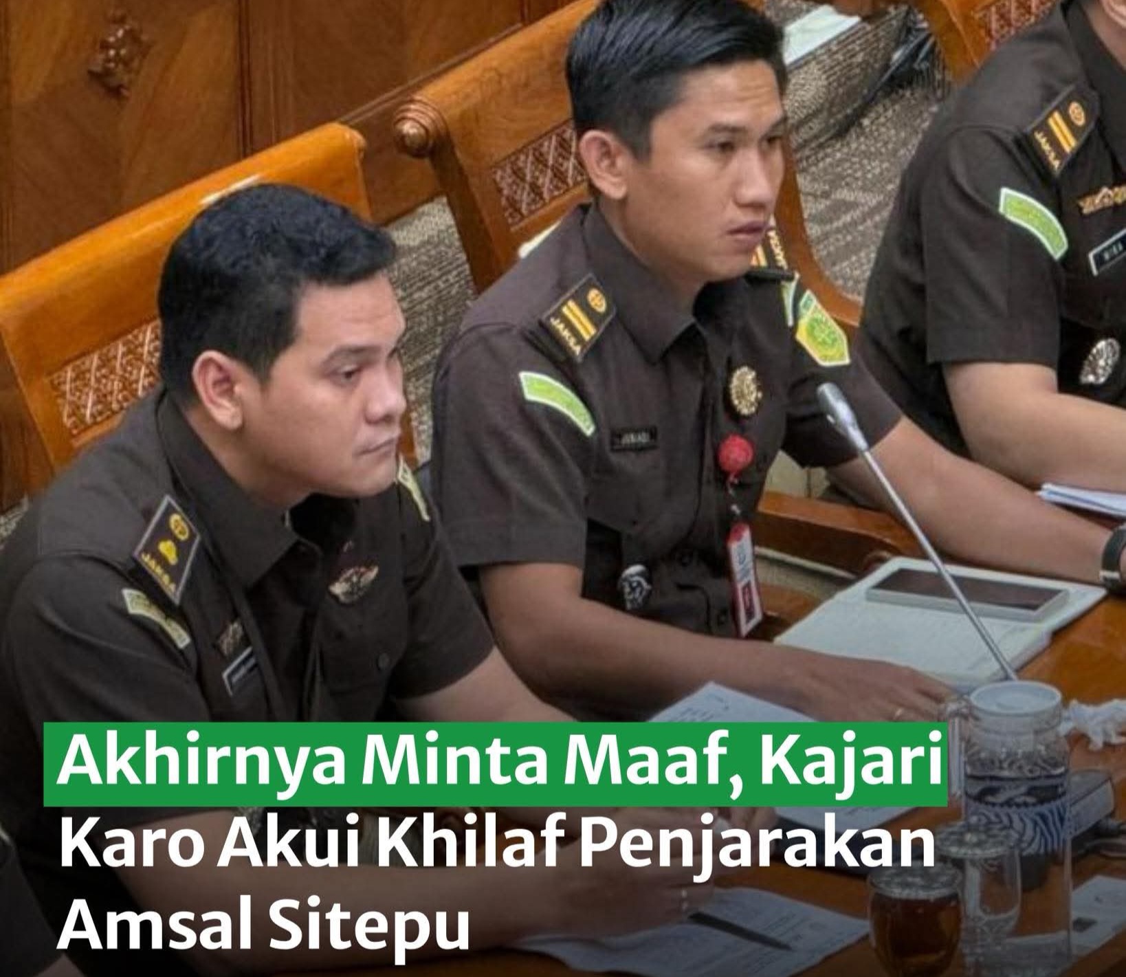 Kepala Kejaksaan Negeri Karo Danke Rajagukguk akhirnya menyampaikan permohonan maaf secara terbuka terkait penanganan kasus videografer Amsal Sitepu.