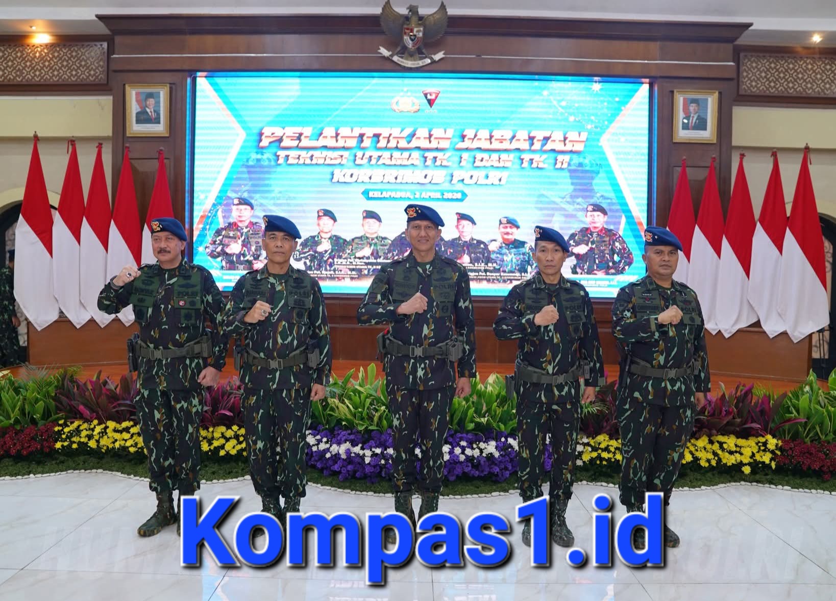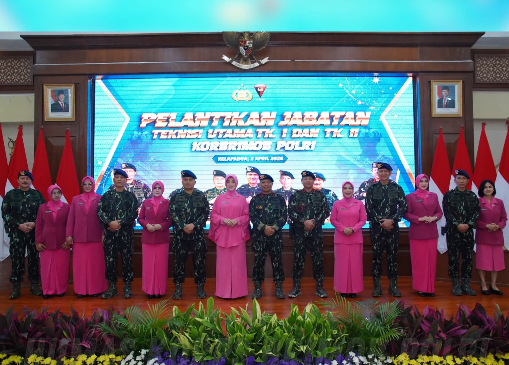 Komandan Korps Brimob Polri Komjen Pol. Ramdani Hidayat memimpin Upacara Pelantikan Jabatan Teknisi Utama Tk. I dan Tk. II Korbrimob Polri yang berlangsung di Gedung Gineung Pratidina Mako Korbrimob Polri, Kelapadua, Cimanggis, Kota Depok, Kamis (2/4/2026).
