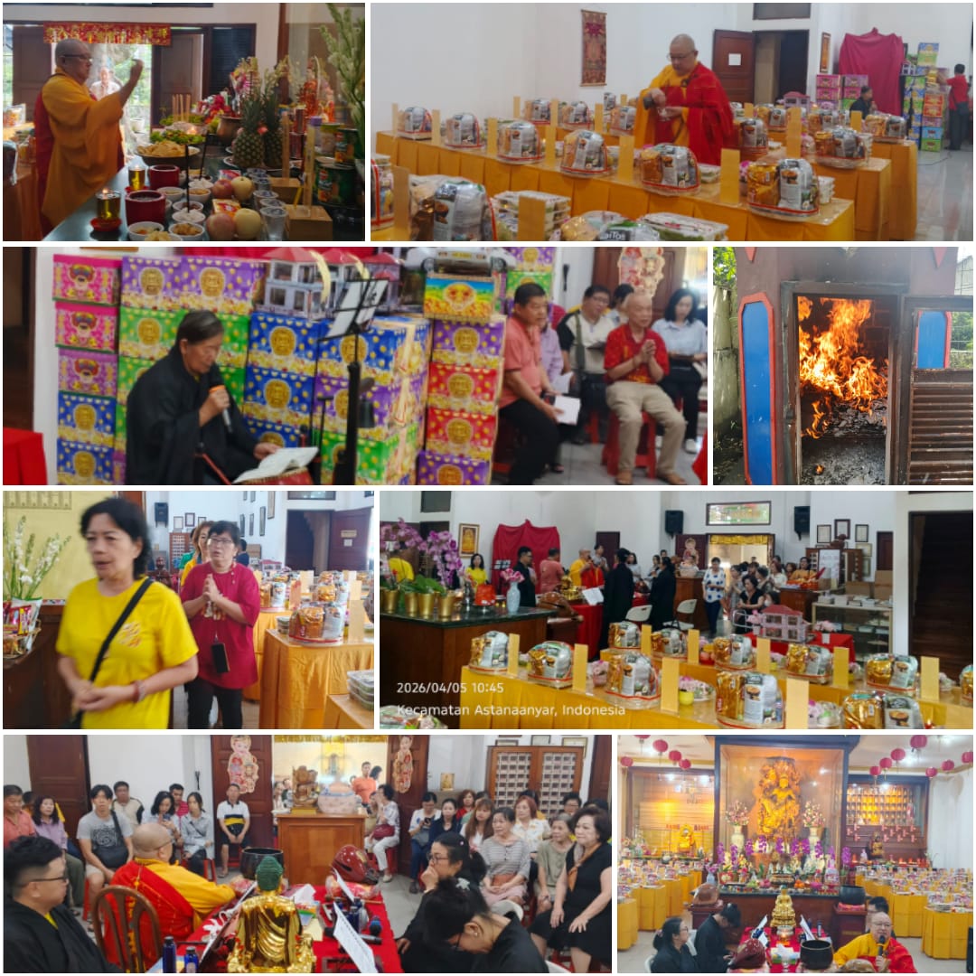 Suasana khidmat menyelimuti saat para bhiksu dan umat berkumpul. Dengan mengenakan jubah kebesaran, pemimpin ritual membacakan sutra dan doa-doa suci. Ini adalah momen pelimpahan jasa, di mana energi kebajikan yang dilakukan oleh keluarga dipersembahkan untuk kedamaian arwah. Wajah-wajah yang menunduk khusyuk dan tangan yang terkatup dalam anjali menunjukkan sebuah kepercayaan mendalam: bahwa doa yang tulus memiliki kekuatan untuk meringankan beban dan menuntun langkah leluhur menuju alam kebahagiaan.