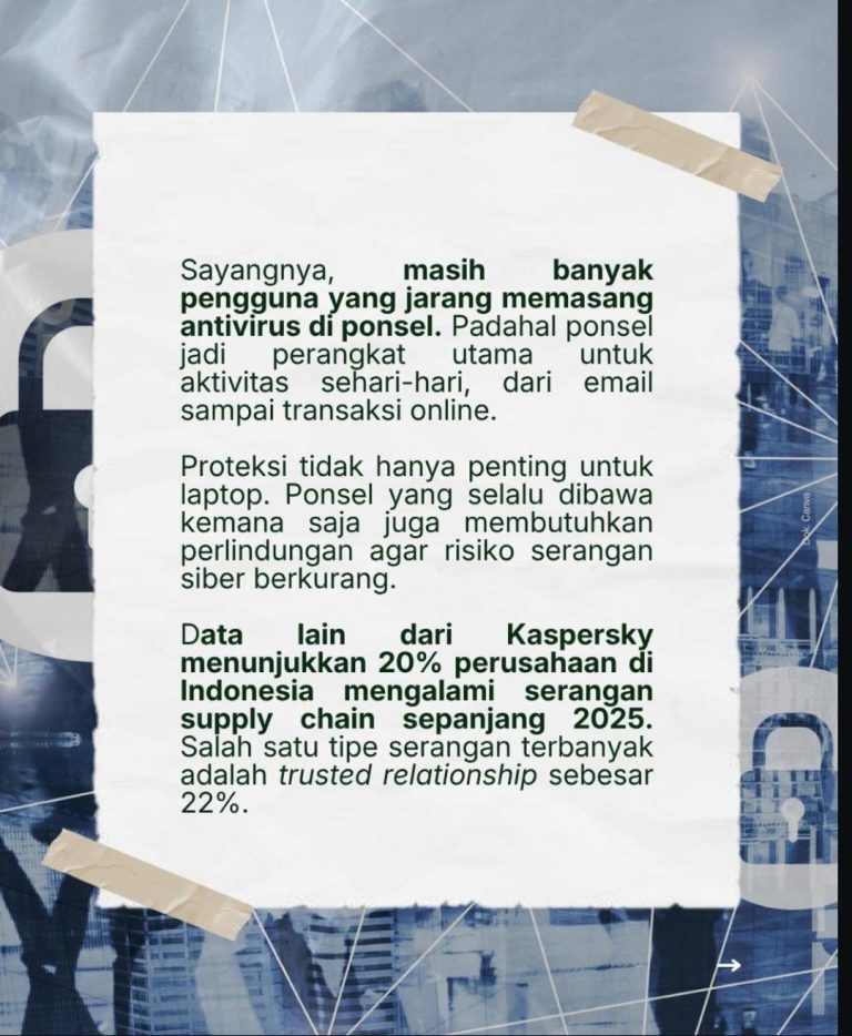 Rantai Pasok: Titik Lemah Baru Dunia Korporasi Sektor perusahaan pun berada dalam posisi rentan. Kaspersky mencatat 1 dari 5 perusahaan di Indonesia menjadi korban serangan rantai pasok (supply chain attack) sepanjang 2025.