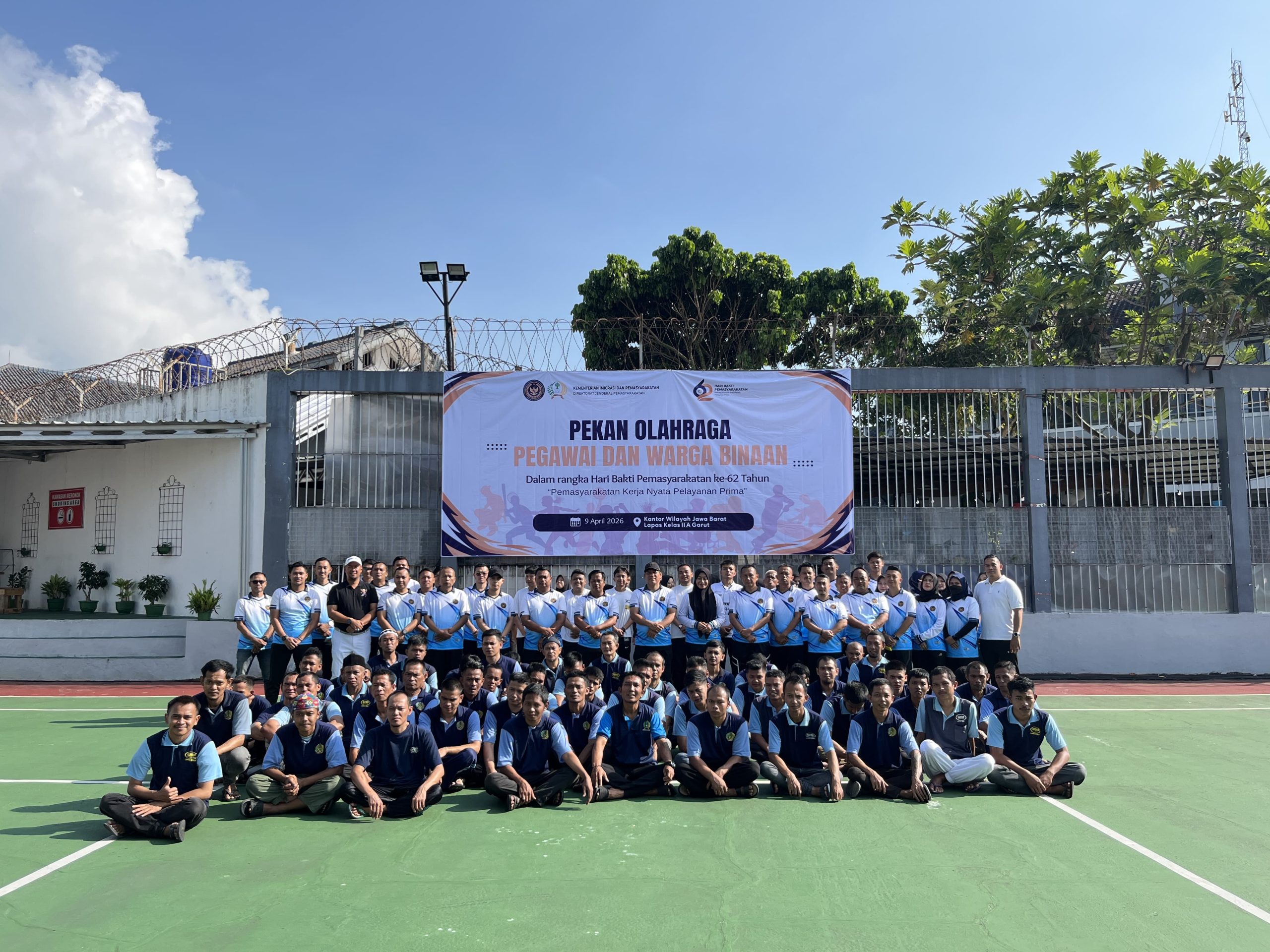Dalam rangka memperingati Hari Bhakti Pemasyarakatan ke-62 Tahun 2026, Lembaga Pemasyarakatan (Lapas) Kelas IIA Garut menggelar upacara pembukaan Pekan Olahraga Pegawai dan Narapidana pada Kamis (09/04/2026). Kegiatan yang berlangsung di Lapangan Upacara Lapas Garut tersebut diikuti oleh perwakilan pegawai serta warga binaan pemasyarakatan dalam suasana penuh semangat dan kebersamaan.