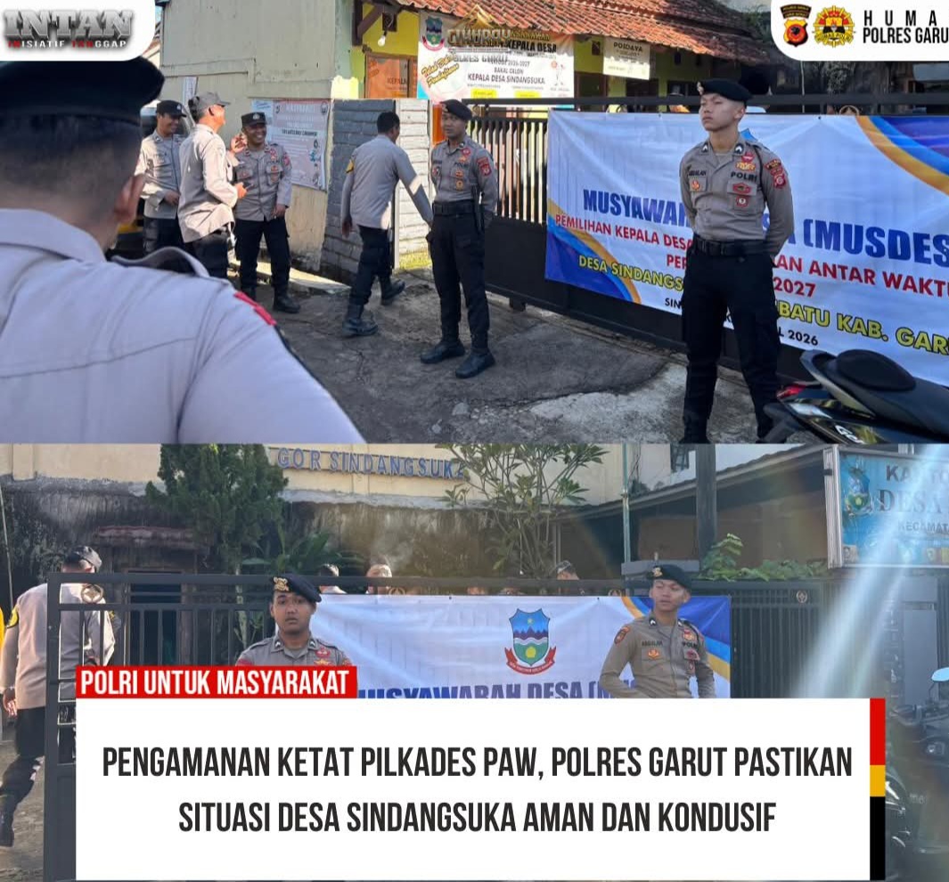 Jajaran Sat Samapta Polres Garut melaksanakan pengamanan kegiatan Pelayanan Pemilihan Kepala Desa Antar Waktu (PAW) di Desa Sindangsuka, Kecamatan Cibatu, Kabupaten Garut, Senin (13/04/2026).