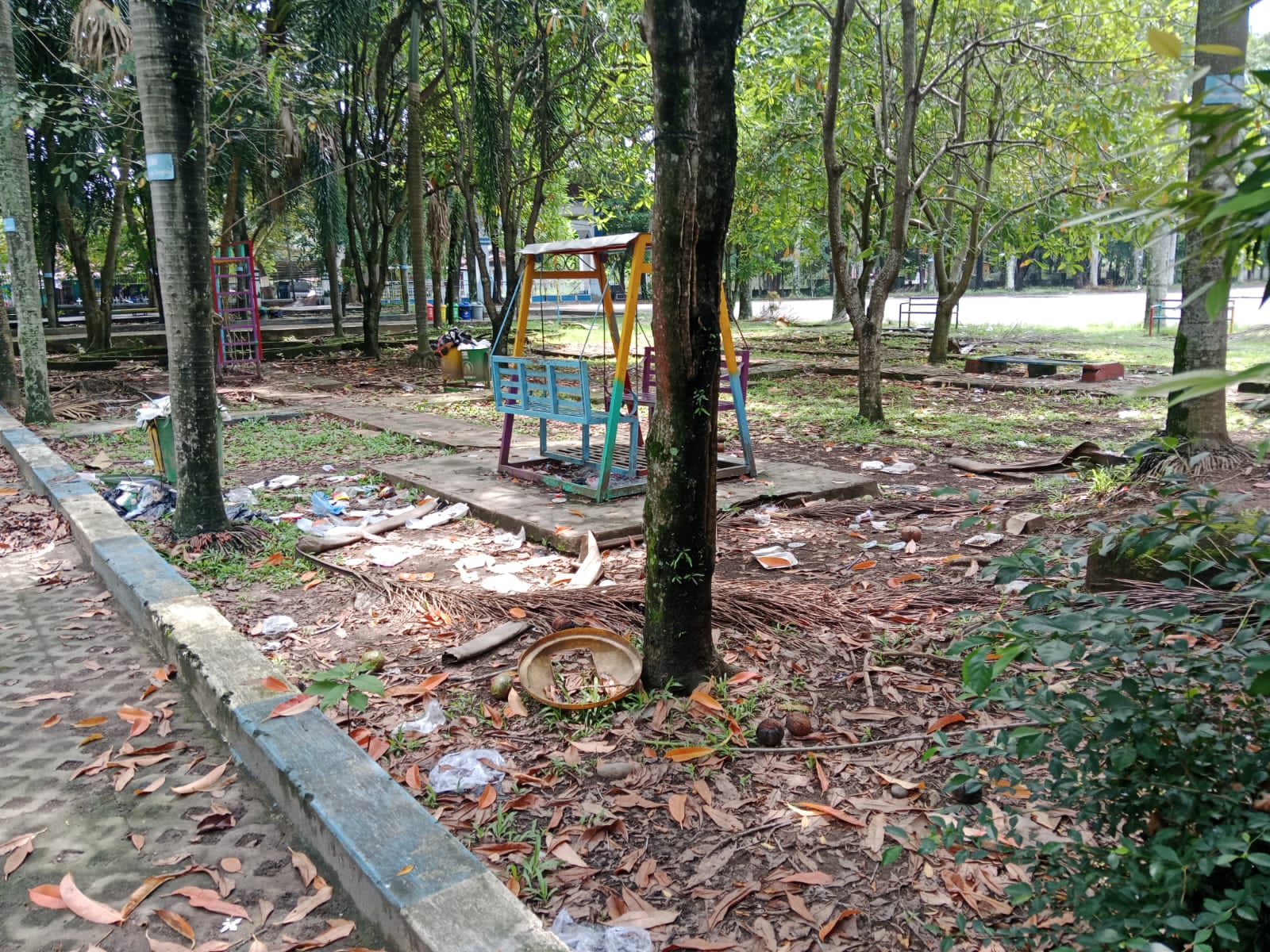 “Kami mau liburan ke taman depan kantor KONI jadi malas karena sampah menumpuk dan bau bangkai, kiranya pihak terkait dapat segera membersihkan karena taman ini salah satu lokasi favorit untuk bersantai apalagi banyak hiburan bagi anak – anak, ” ujarnya.