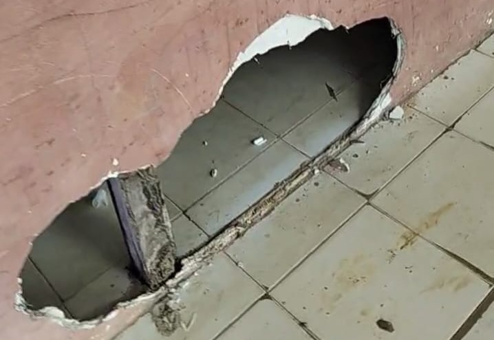 Beberapa ruang kelas terlihat tidak lagi layak digunakan untuk kegiatan belajar mengajar. Dinding bangunan mulai retak di berbagai sisi, atap mengalami kebocoran saat hujan turun, serta plafon yang tampak rapuh berpotensi runtuh sewaktu-waktu. Kondisi lantai yang tidak rata dan sebagian sudah rusak juga menambah risiko kecelakaan bagi siswa maupun tenaga pengajar.