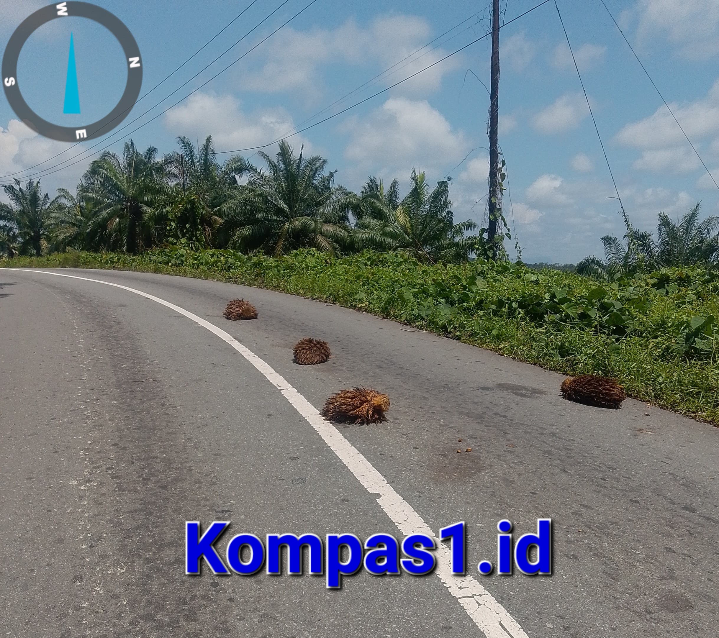 Berdasarkan pantauan di lokasi, tandan sawit tersebut berada tepat di jalur kendaraan, bahkan sebagian berada di tikungan jalan. Kondisi ini sangat berpotensi menyebabkan kecelakaan lalu lintas, terutama bagi pengendara roda dua yang rawan kehilangan kendali saat menghindari atau melindas tandan sawit tersebut.