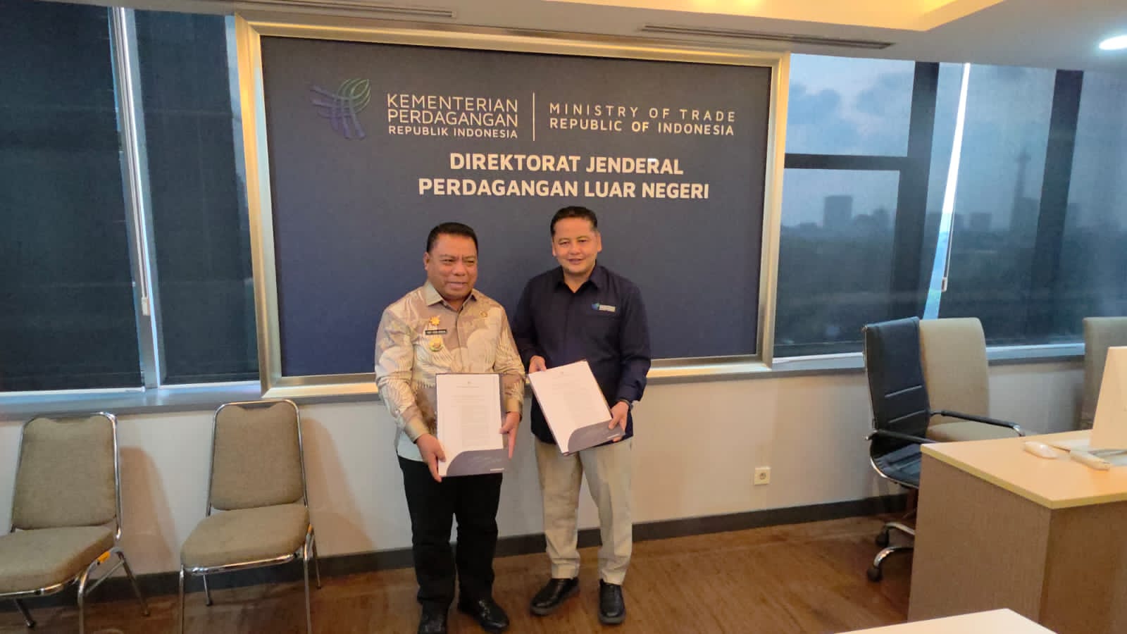 16 April 2026 – Penyeraha Dokumen Instansi Penerbit Surat Keterangan Asal Barang ( IPSKA ) oleh Direktur Jenderal Perdagangan Luar Negeri Kementerian Perdagangan Republik Indonesia Tommy Andana kepada Bupati Halmahera Utara Piet Hein Babua, di Jakarta 15 April 2026.