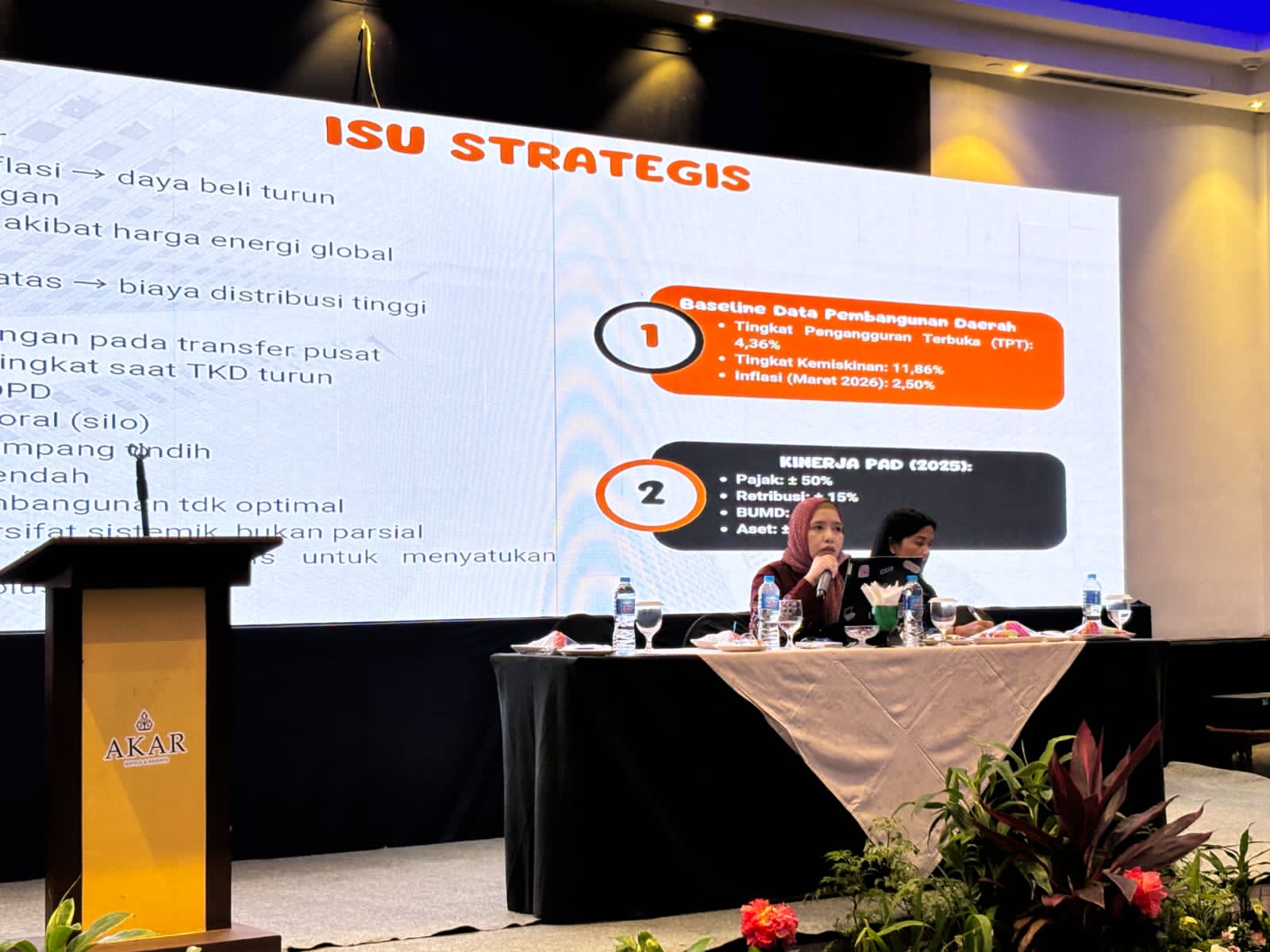 FGD ini menghadirkan narasumber dari Kementerian Dalam Negeri, Ayu Hayanutunnisma, S.E., M.M., selaku Ketua Tim Peningkatan SDM pada Badan Strategi Kebijakan Dalam Negeri. Dalam paparannya, ia menyampaikan pentingnya penajaman isu strategis dan sinkronisasi peran OPD dalam penyusunan ADEM, khususnya untuk mendukung penyusunan APBD Perubahan 2026 dan APBD 2027.