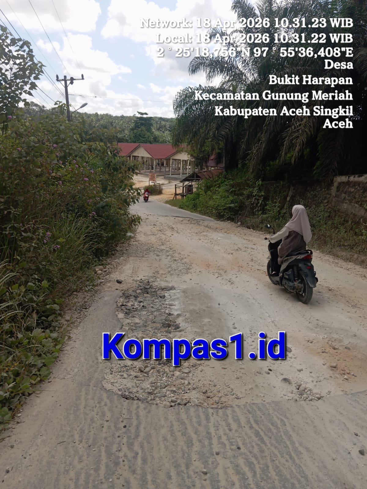 Tokoh masyarakat Desa Bukit Harapan, Kecamatan Gunung Meriah, Kabupaten Aceh Singkil, angkat bicara terkait kondisi jalan rusak parah yang kerap menyebabkan kecelakaan.