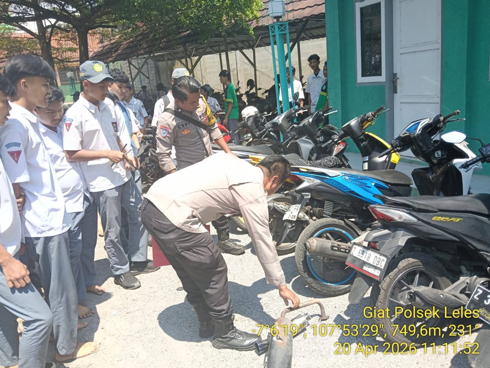 SMK Al Farizi Leles, Garut, berkolaborasi dengan Polsek Leles menggelar operasi penertiban kendaraan pelajar yang menggunakan knalpot tidak standar (brong), Razia ini dilakukan di lingkungan sekolah sebagai respons terhadap keluhan masyarakat terkait kebisingan yang ditimbulkan oleh sepeda motor dengan knalpot brong. Penggunaan knalpot brong selain mengganggu kenyamanan juga melanggar aturan lalu lintas. Senin (20/04/2026)