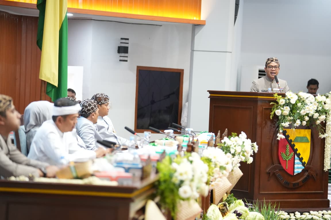 Hal ini disampaikan Bupati Dadang Supriatna ( KDS) di hadapan Gubernur Jawa Barat Dedi Mulyadi (KDM) saat sambutannya pada acara Rapat Paripurna DPRD Hari Jadi ke-385 Kabupaten Bandung di Gedung Paripurna DPRD Kabupaten Bandung, Soreang, Senin (20/4/2026).