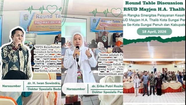 RSUD Mayjen H.A. Thalib menggelar Round Table Discussion pada Sabtu (18/4/2026) sebagai langkah strategis memperkuat sinergi pelayanan kesehatan antara rumah sakit dan Puskesmas di wilayah Kota Sungai Penuh dan Kabupaten Kerinci.