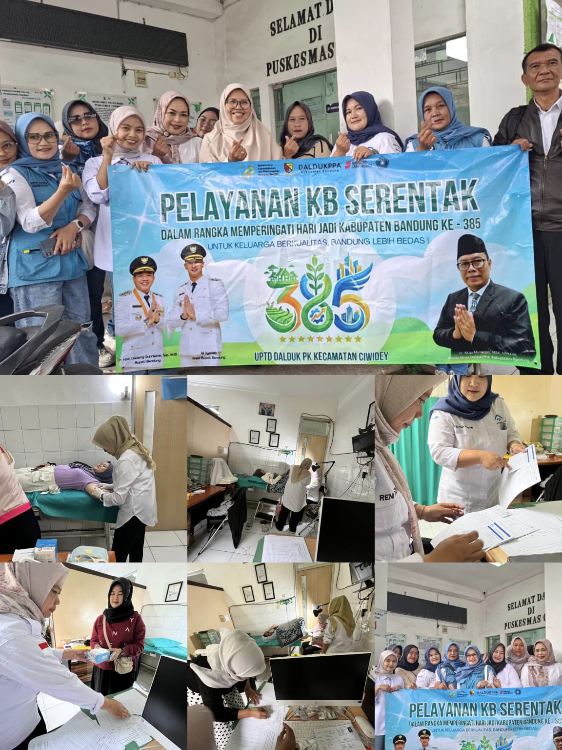 Dinas Pengendalian Penduduk, Keluarga Berencana, Pemberdayaan Perempuan dan Perlindungan Anak (Daldukppa) Kabupaten Bandung menggelar kegiatan Pelayanan KB Serentak dalam rangka memperingati Hari Jadi Kabupaten Bandung ke-385. Kegiatan ini dilaksanakan di faskes dan puskesmas wilayah Kabupaten Bandung dengan melibatkan tenaga kesehatan dan masyarakat setempat.