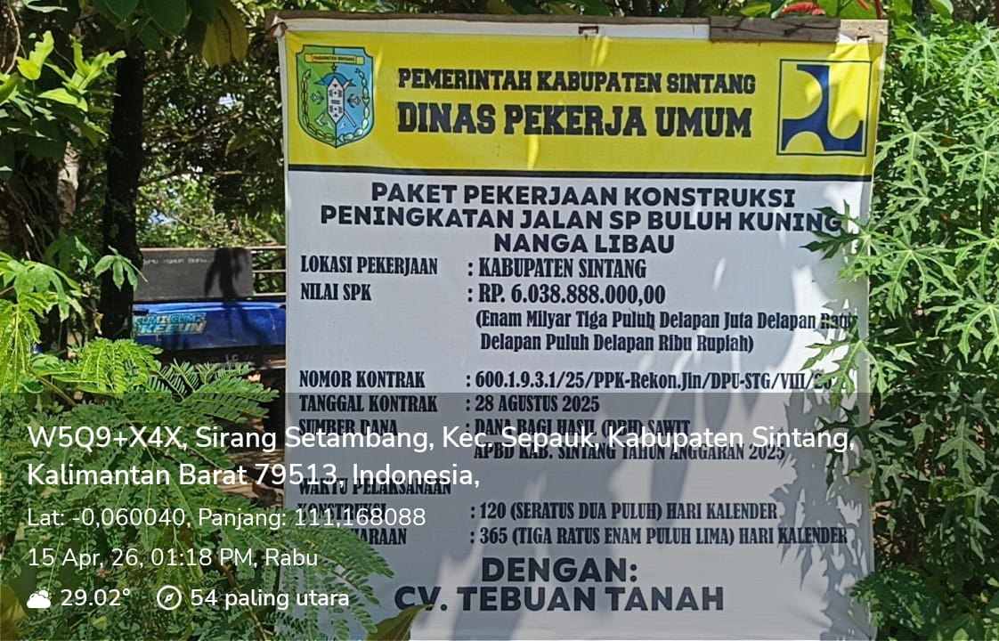 Kabupaten Sintang, Kalimantan Barat, yang dibiayai dari APBD Tahun Anggaran 2025 senilai Rp 6.038.888.000, kini menjadi sorotan publik. Jalan yang baru saja selesai dikerjakan oleh kontraktor CV. TEBUAN TANAH tersebut dilaporkan telah mengalami kerusakan yang serius, meskipun masih berada dalam Masa Pemeliharaan.